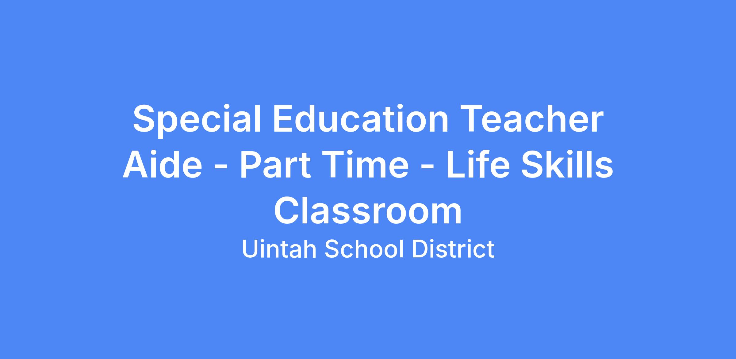 PT SPECIAL EDUCATION TEACHER AIDE (LIFE SKILLS CLASSROOM) ~ ASHLEY ELEMENTARY