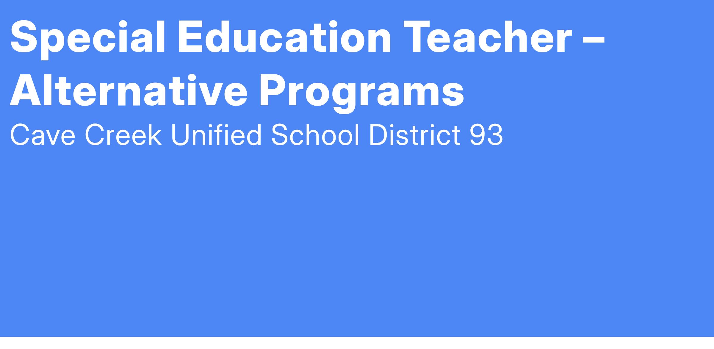 CCUSD is seeking a compassionate, dedicated, and dynamic Special Education Teacher for our Alternative Programs. This position is ideal for an educator who is passionate about working with students who may need specialized instruction and support in a non-traditional learning environment.