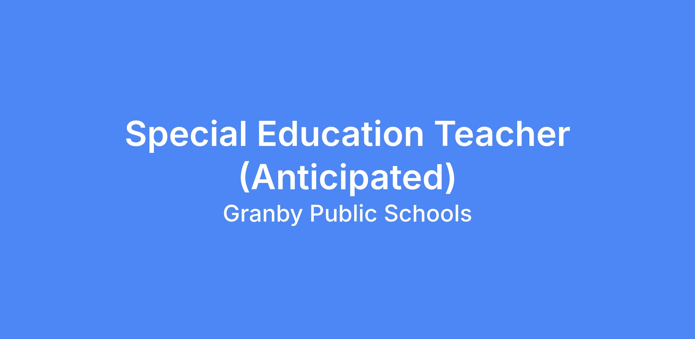 Preferred: Prior work experience as a Special Education Teacher