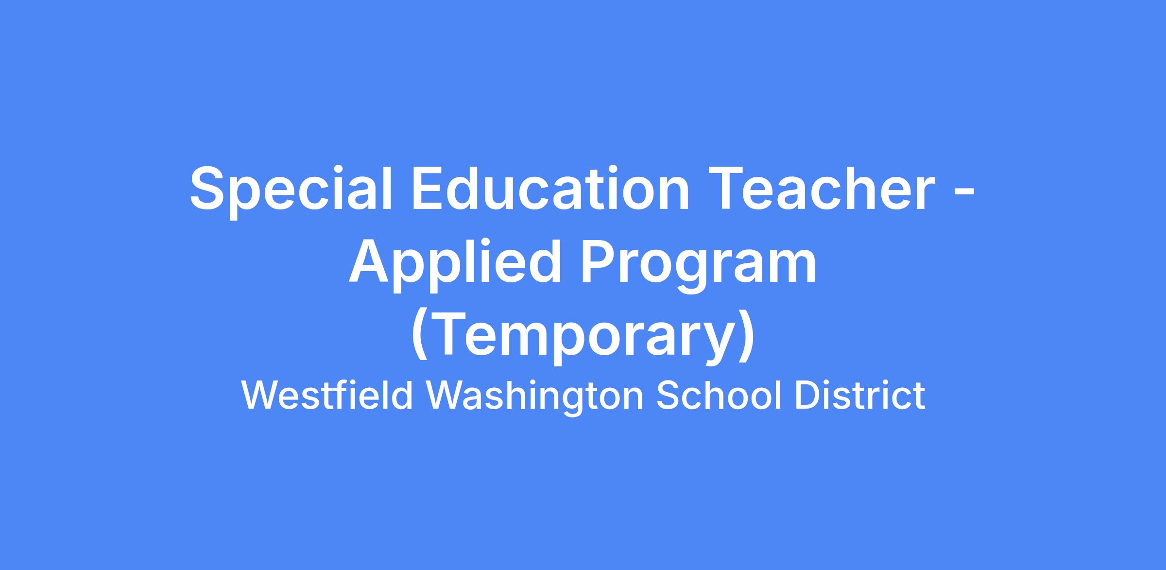 Special Education Teacher - Applied Program (Temporary) position is available at Westfield Middle School effective 2/3/26 - 5/27/26.