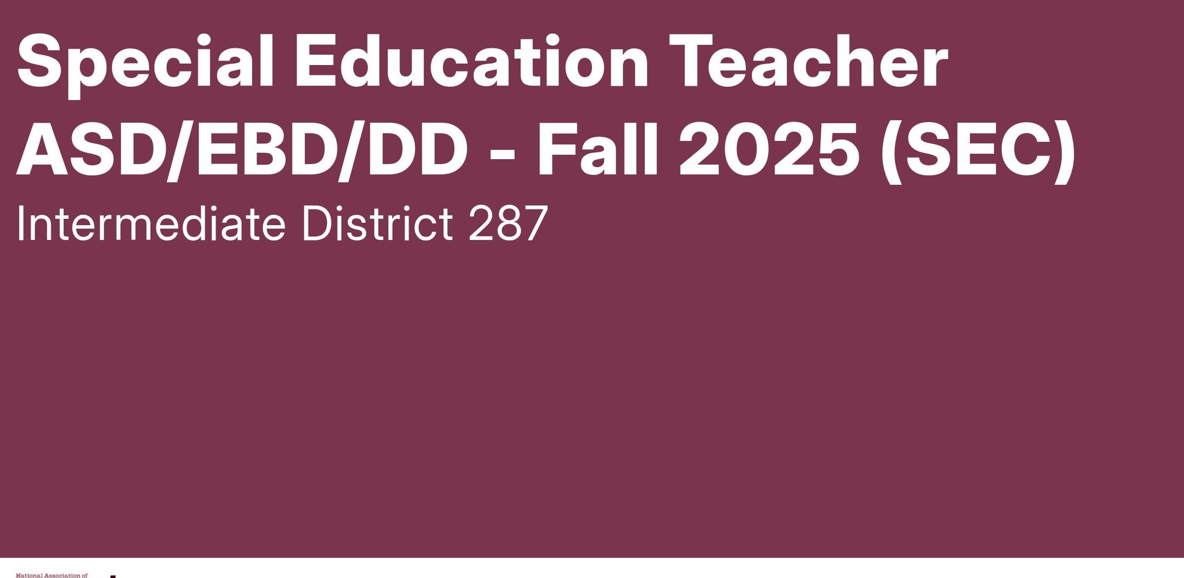 Intermediate District 287 is looking for Special Education Teachers licensed in ASD, EBD, or DD at our South Education Center in Richfield, MN!