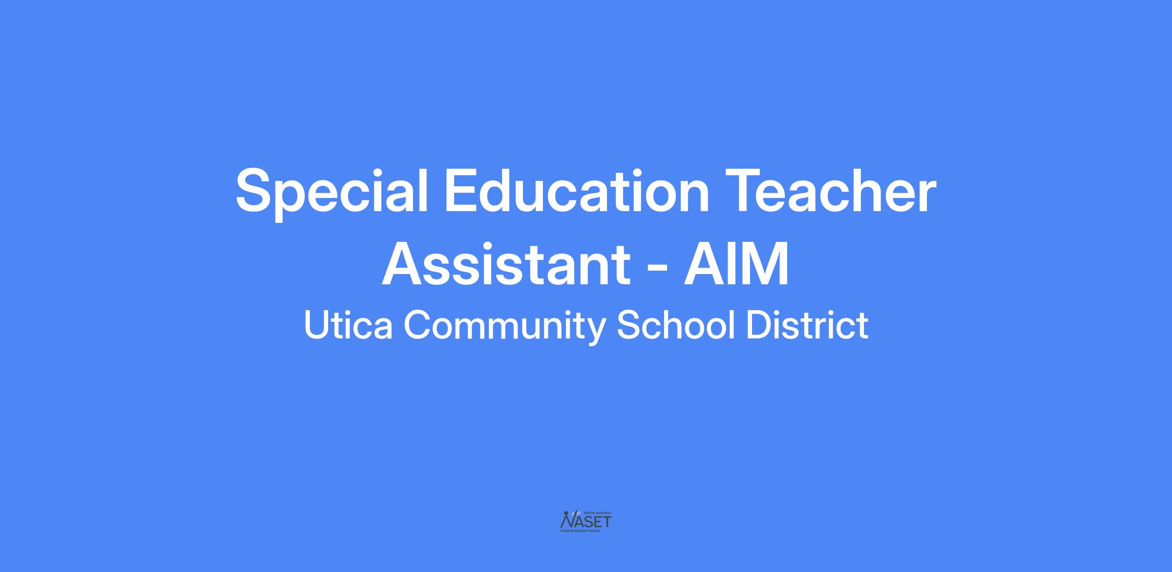 - 7 hrs a day (7:45 am - 3:15 pm w/a 30 min. lunch) - Special Education Teacher Assistant - AIM (Adjusted, Integrated, Modified curriculum)