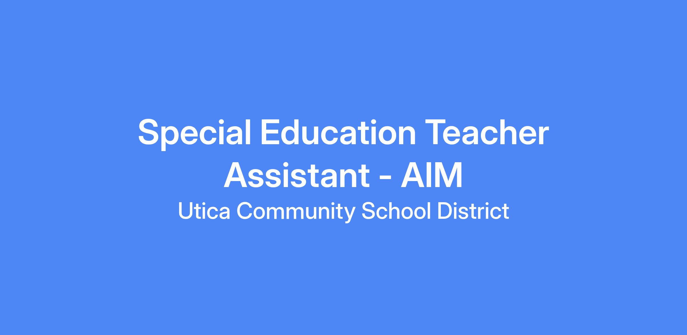 - 7 hrs a day (9:00am - 4:00pm; 30 min lunch) - Special Education Teacher Assistant - AIM (Adjusted, Integrated, Modified curriculum)