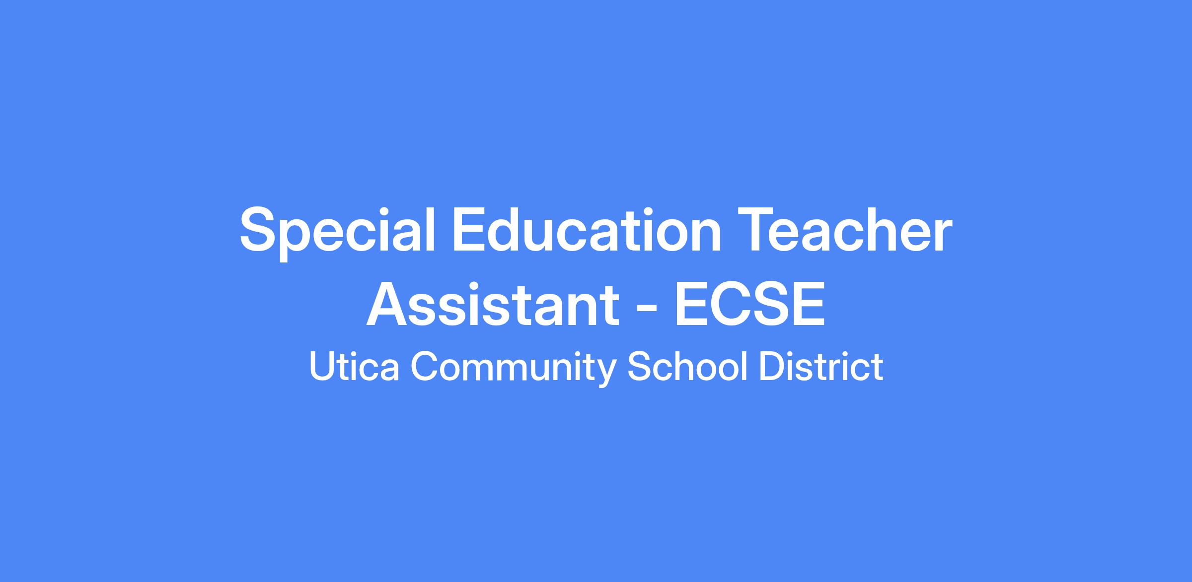 - 6 hrs a day (9:00 am to 4:00 pm with 1 hour lunch) - Special Education Teacher Assistant - ECSE (Early Childhood Special Education)