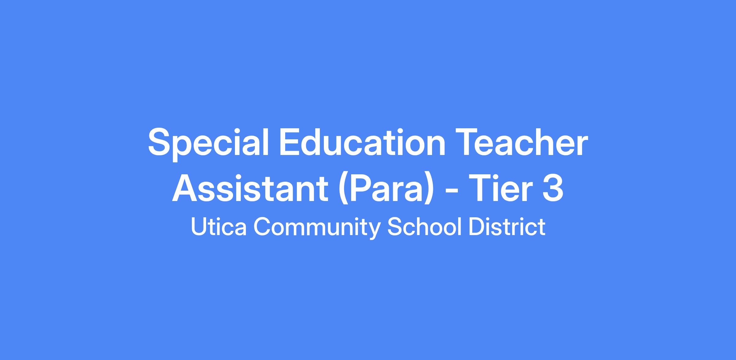 - 7 hrs a day (8:45 am - 4:15 pm, 30 min lunch) - Special Education Teacher Assistant - Tier 3 (Resource Room Program - ASD/Behavior