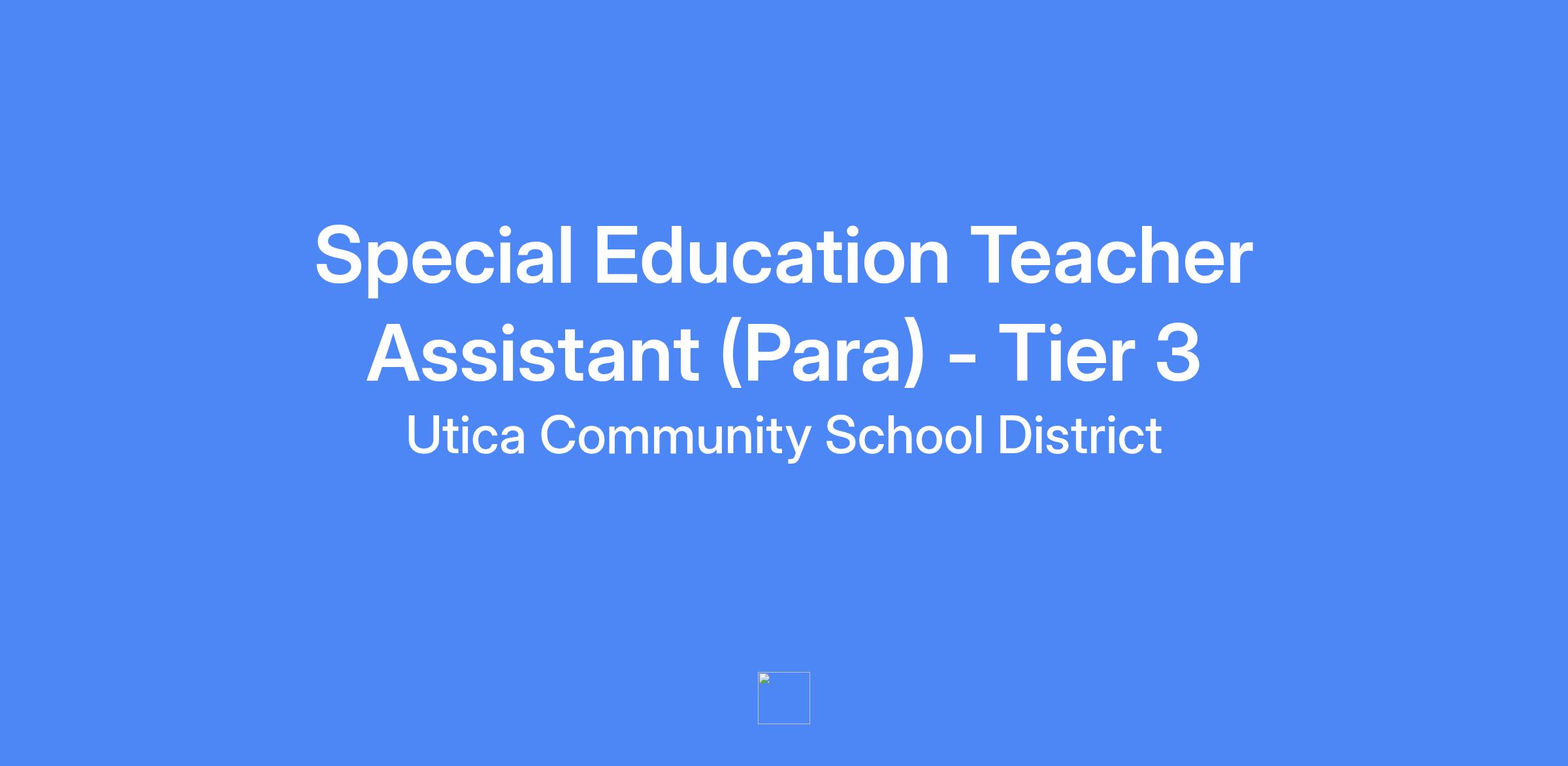 - 7 hrs a day (8:45am - 4:15 pm, 30 min lunch) - Special Education Teacher Assistant - Tier 3 (Resource Room Program - ASD/Behavior