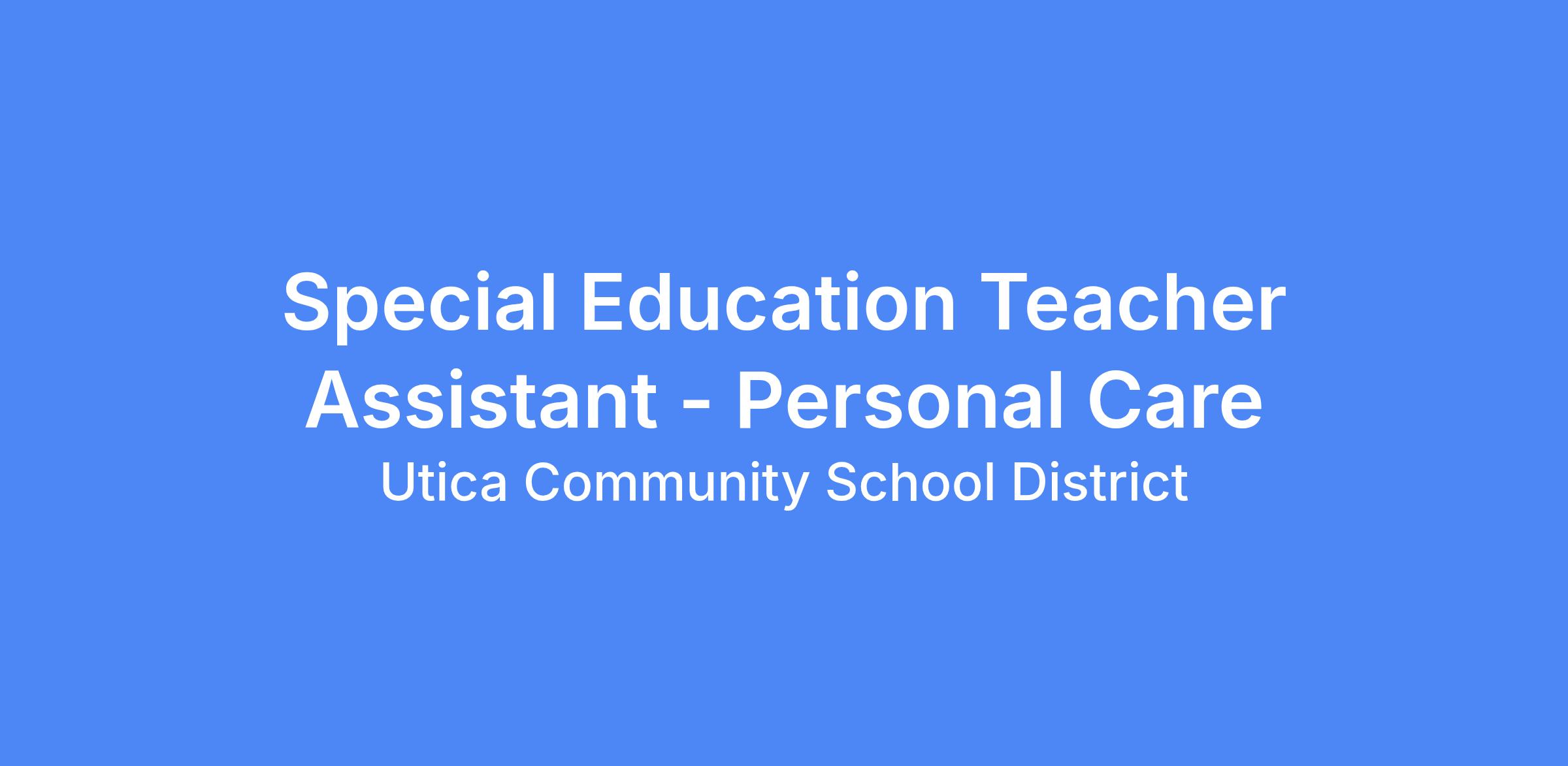- 6 hrs a day (8:50am - 3:50pm; 1 hour lunch) - Special Education Teacher Assistant - Personal Care