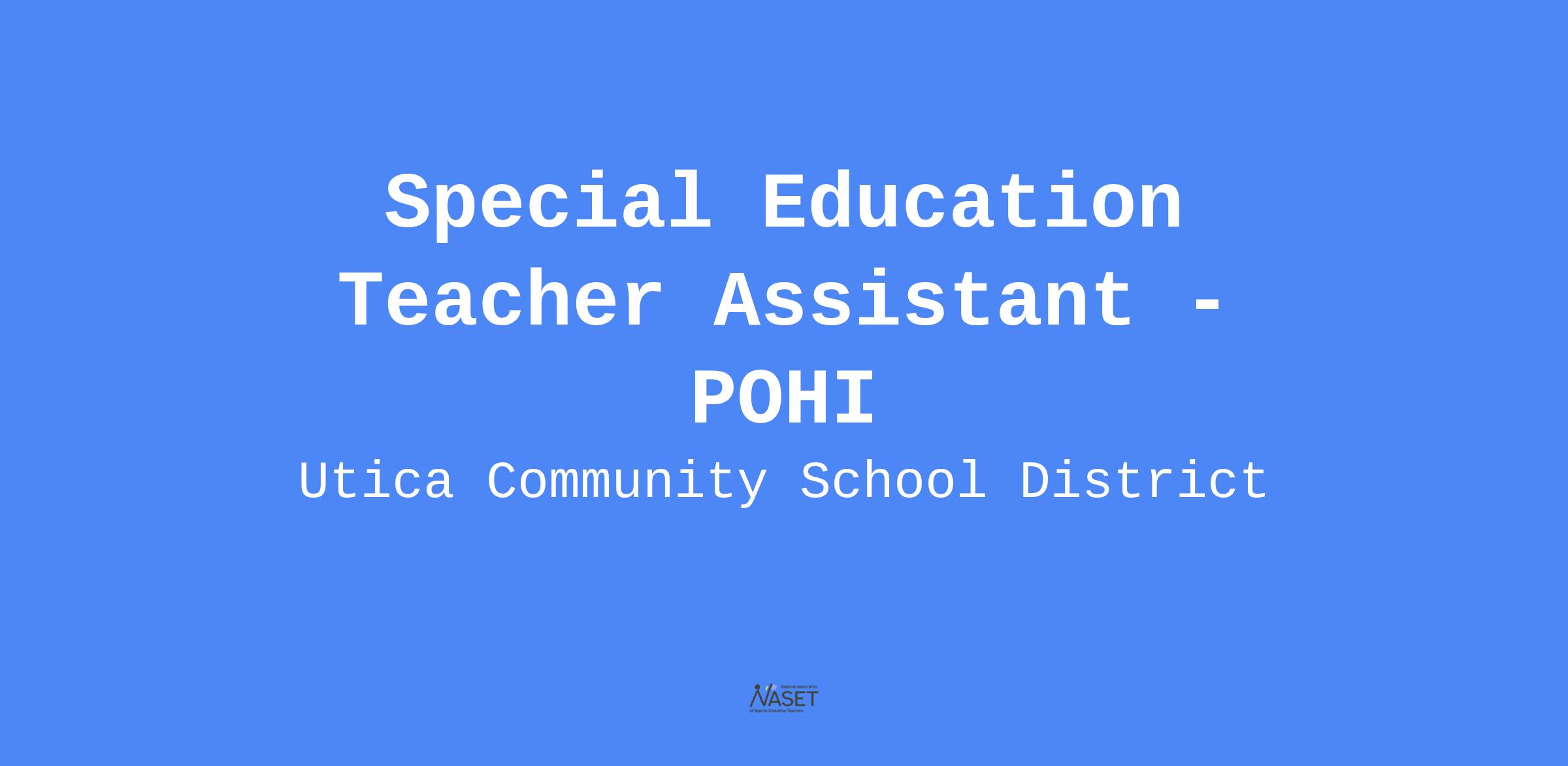- 7 hrs a day 8:00 am - 3:30 pm (30 min. lunch) - Special Education Teacher Assistant - POHI (Physical Impairment/Other Health Impairment)