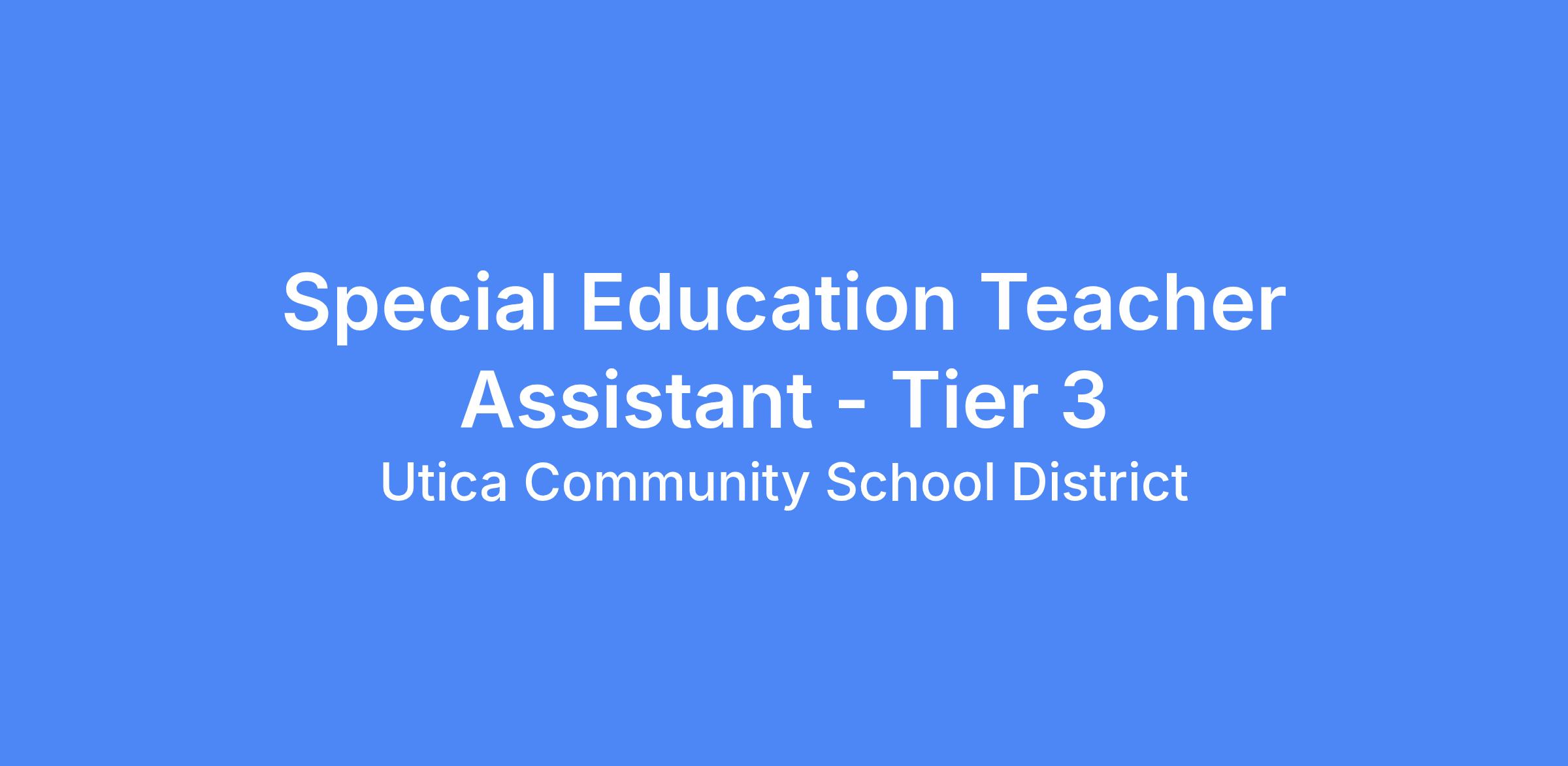 - 7 hrs a day (8:45am - 4:15pm; 30 minute lunch) - Special Education Teacher Assistant - Tier 3 (Resource Room Program - ASD/Behavior