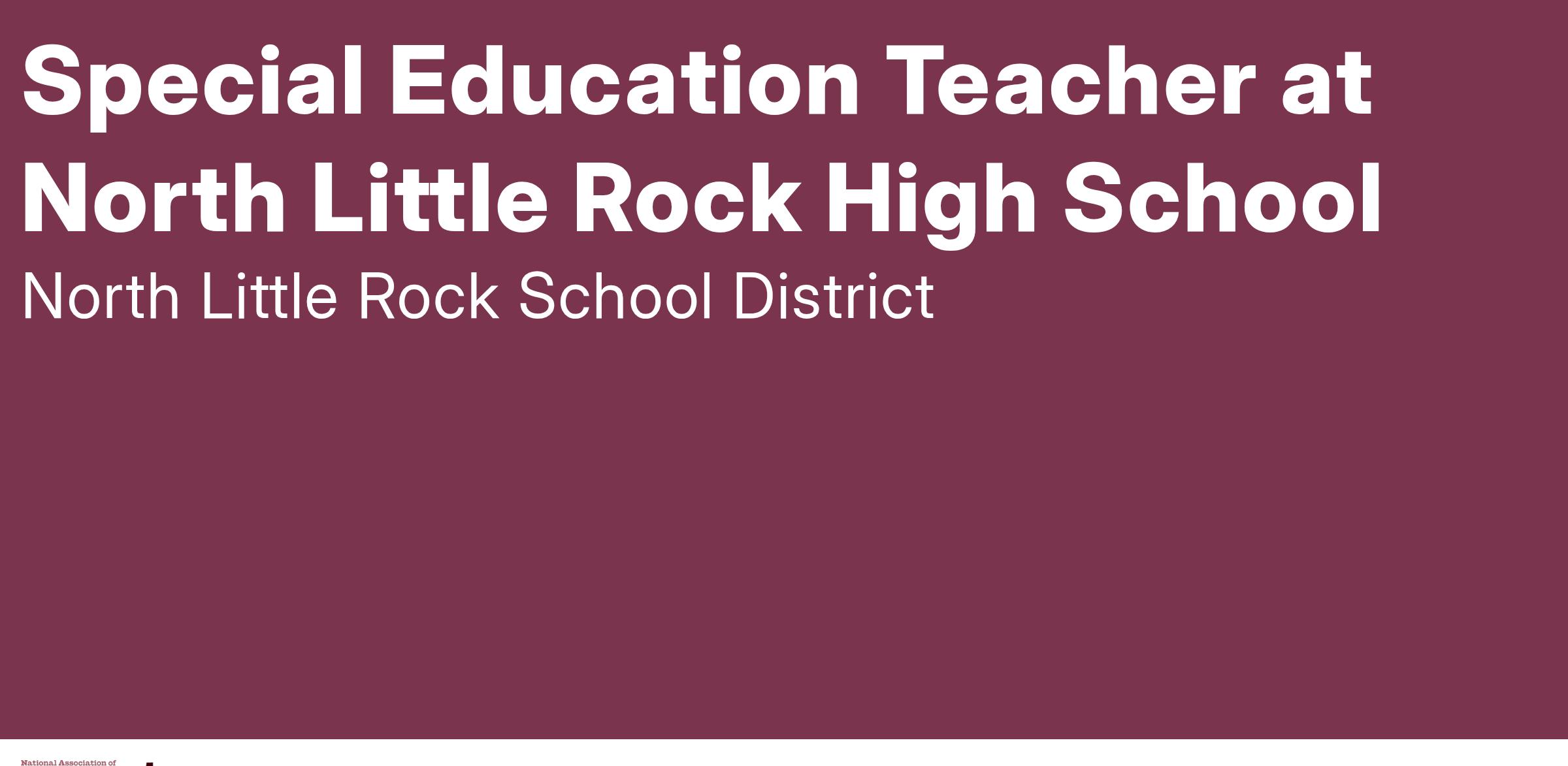 Vacancy for a Special Education Teacher: Requirements are a valid Arkansas Teacher's License with certification in Special Education and equivalent grade-appropriate certification, in addition to meeting ADE Highly Qualified Teacher status, successful completion of Teacher Excellence Support System professional development, and ability and willingness to use current and future technologies for instruction and support. Responsibilities include but are not limited to instructing students in one or more subjects designated according to state licensure/certification and subject matter as assigned by the Director of Special Services. 190-day contract with fringe benefit package. Interested individuals should apply online at www.nlrsd.org by accessing the Employment link. Additional information may be obtained by contacting Dr. LeAnn Stoll, Director of Special Services, via email at stolll@nlrsd.org, or by phone at (501) 771-8033, or by contacting the NLRSD HR Office via email at humanresources@nlrsd.org. / 501 771-8000.