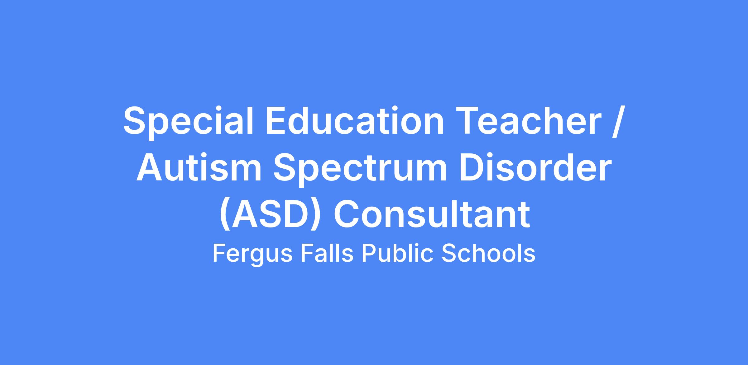 The Fergus Falls School District is actively searching for a special education teacher specializing in Autism Spectrum Disorders to serve as a consultant for our school district. We will consider candidates interested in working a .5 - 1 FTE. This position will begin the 2026-27 school year.