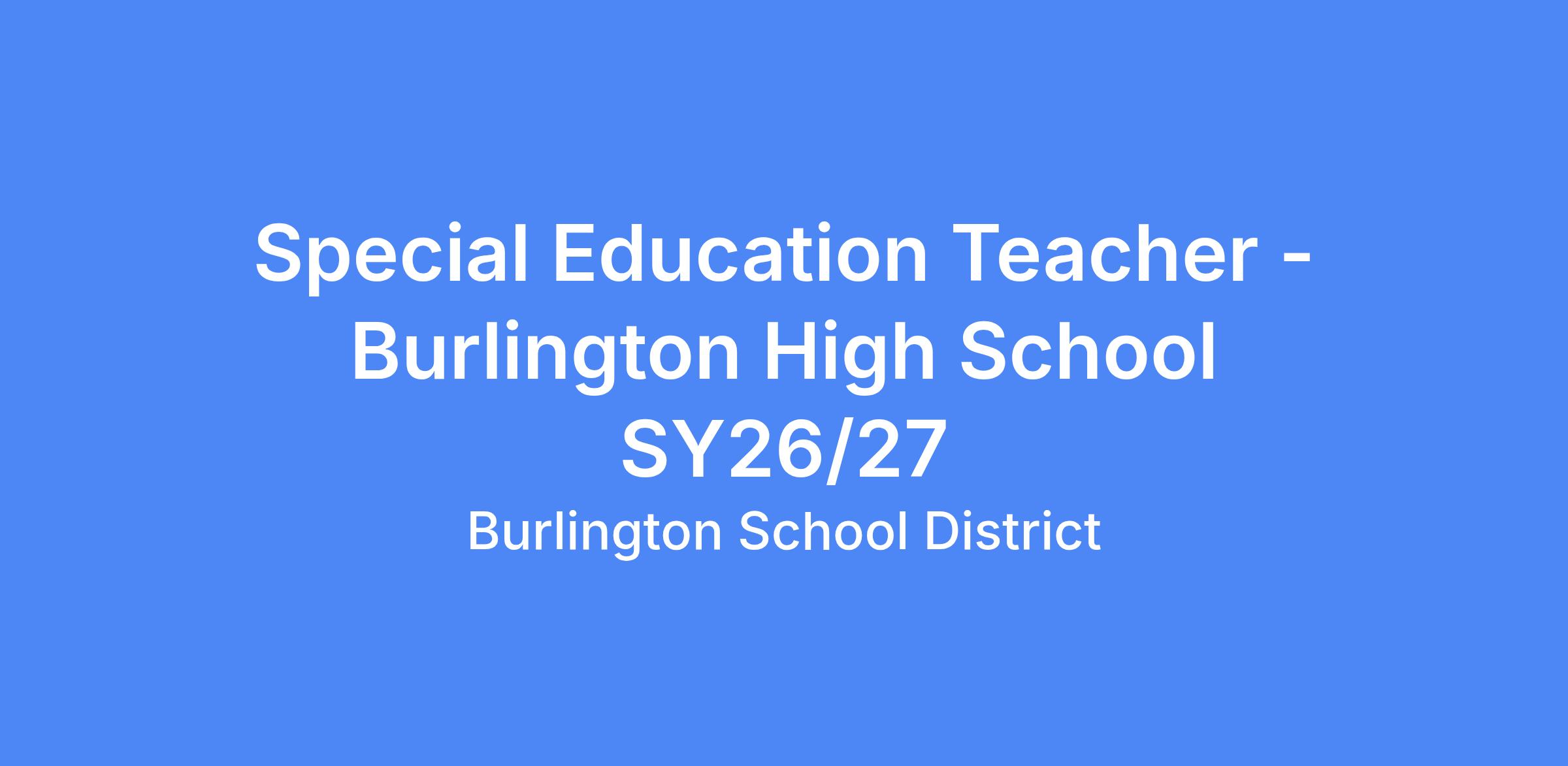 Special Education Teacher - Burlington High School SY26/27