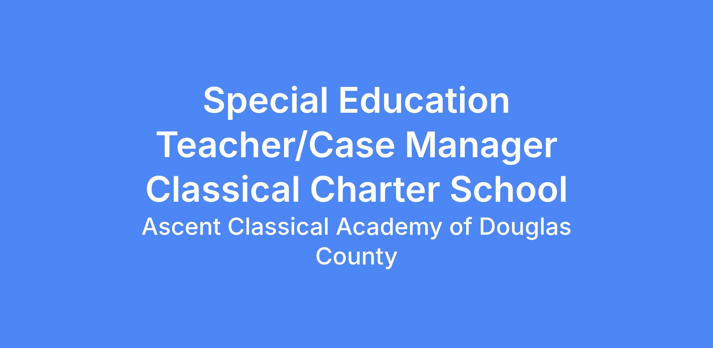 Ascent Classical Academy of Douglas County is seeking a dedicated Special Education Teacher to support students with diverse learning needs within our classical, content-rich academic model.