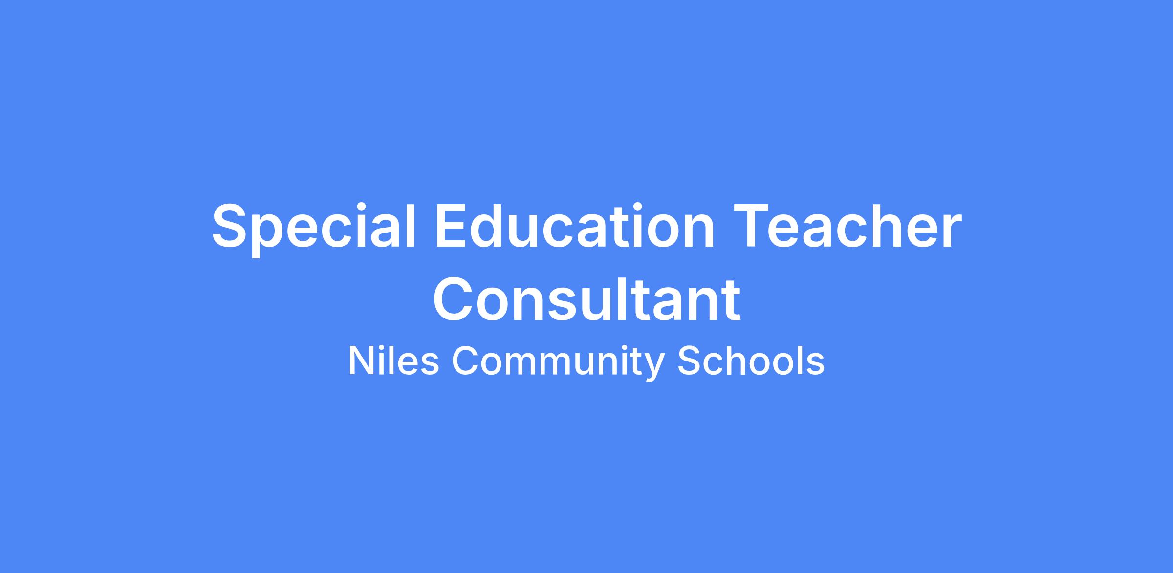 Niles Community Schools is looking for a dynamic Special Education Teacher Consultant. Highly-effective communication skills and professionalism required for daily interaction with a diverse workforce, student population, building administration and community. Collaborate with general education, special education and ancillary staff to develop and maintain academic and behavioral programming for students with an Individualized Education Plan. Functions as a member of the multidisciplinary evaluation team. Collects, analyzes and interprets data and participates in special education identification process.