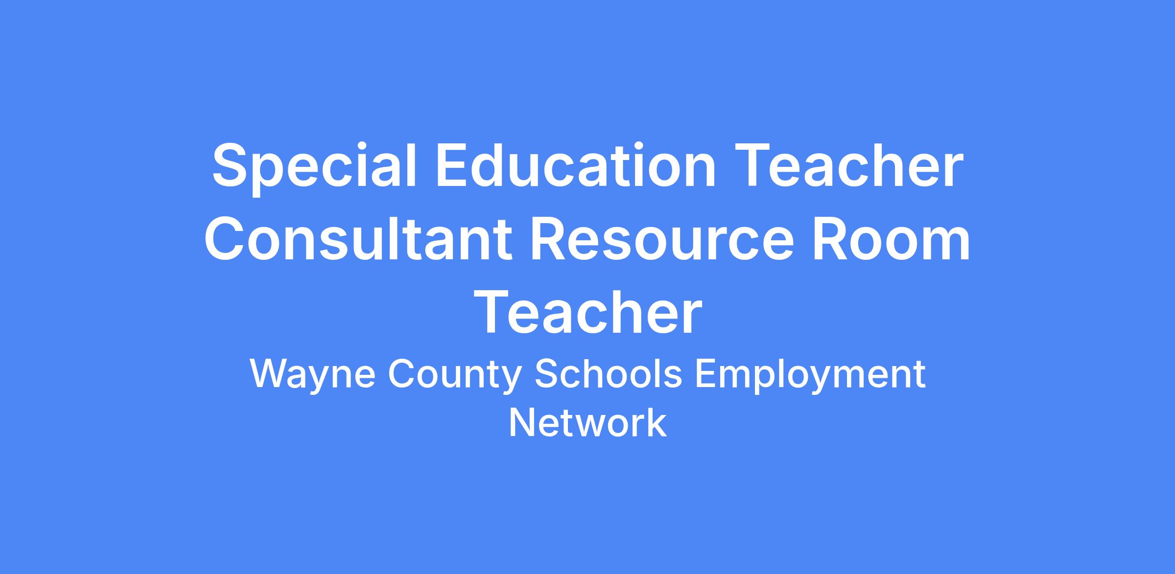 Special Education Teacher Consultant Resource Room Teacher