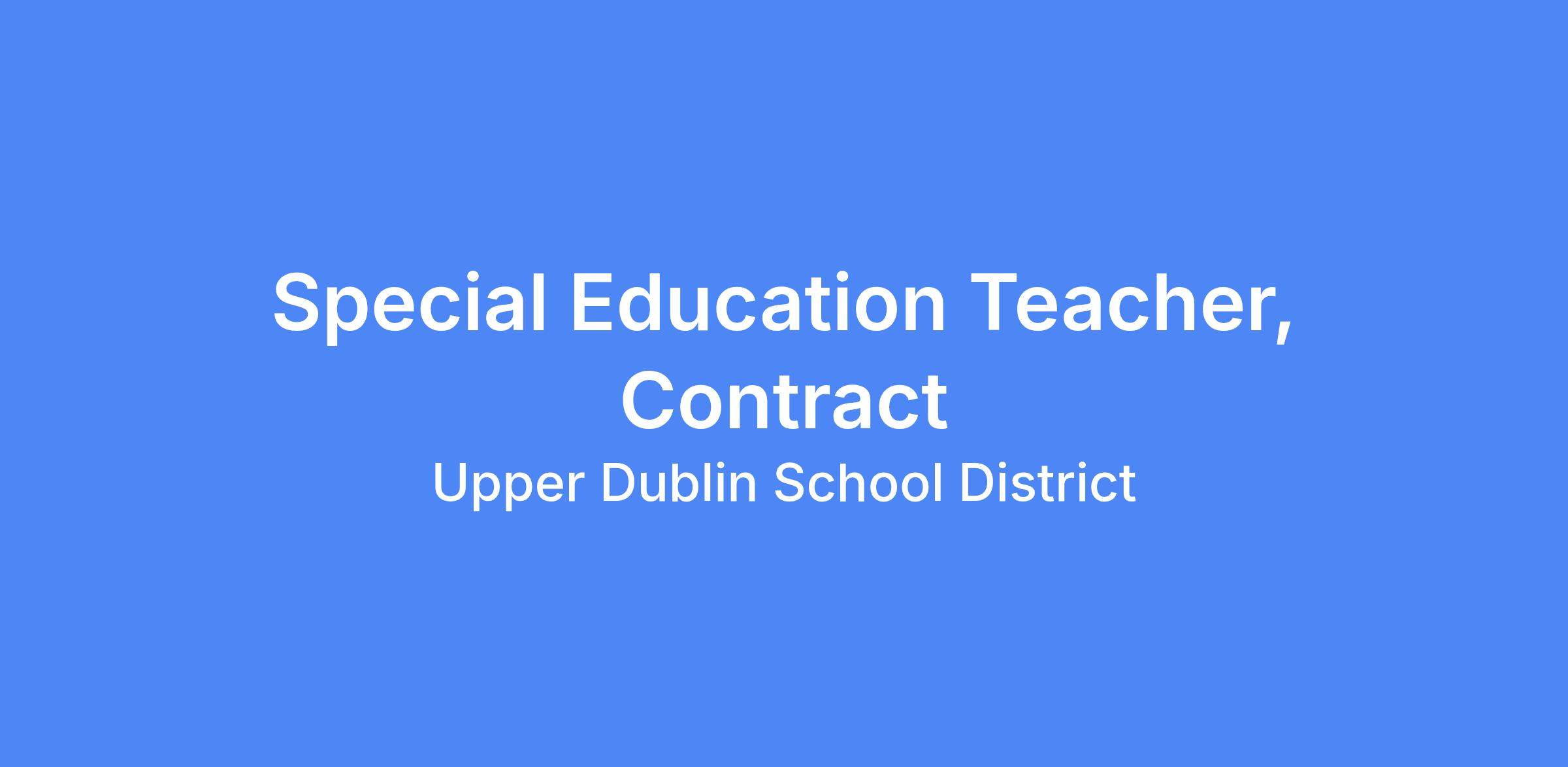 POSITION: Special Education Teacher, Contract