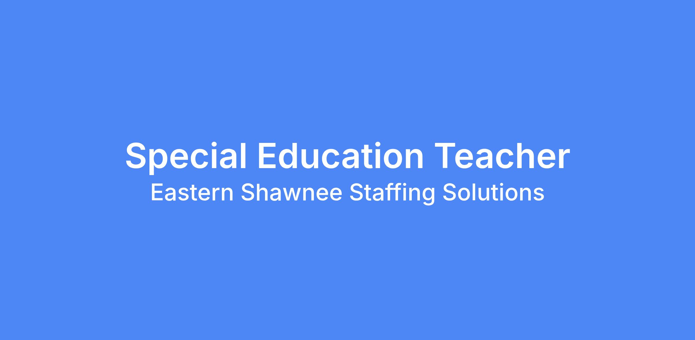 Eastern Shawnee Staffing Services, in partnership with the BIE, is seeking a qualified Special Education Teacher to provide on-site educational services. The selected candidate will work with students requiring special education support, ensuring their academic and developmental needs are met in compliance with federal and state standards.