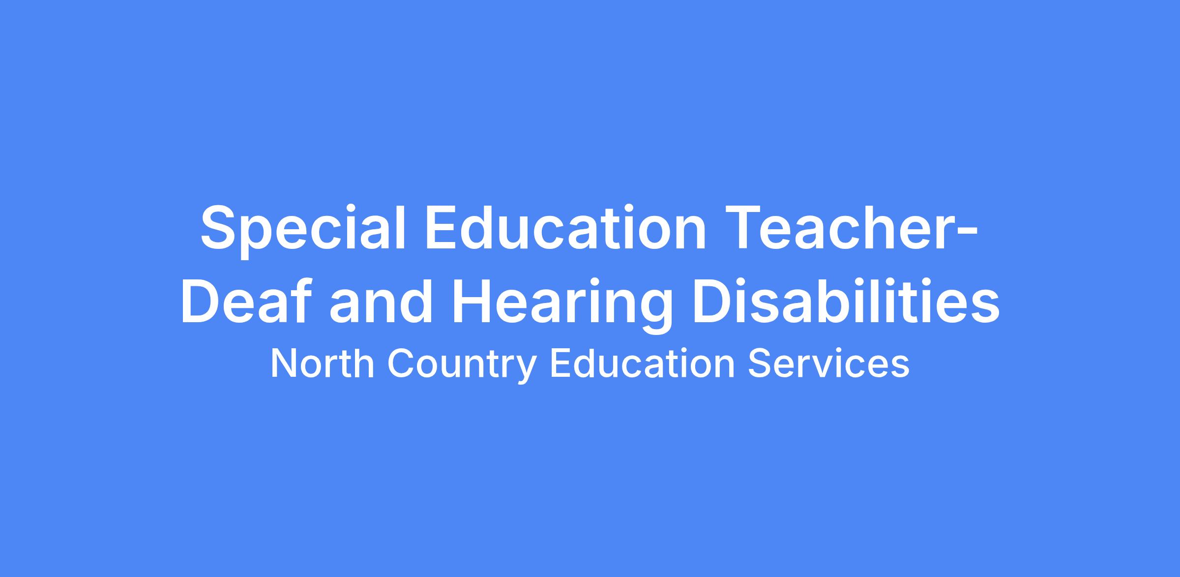 North Country Education Services is seeking a 25 hours per week Special Education Teacher-Deaf and Hearing Disabilities to work at a school in the greater Plymouth Region for the 2026-2027 school year.
