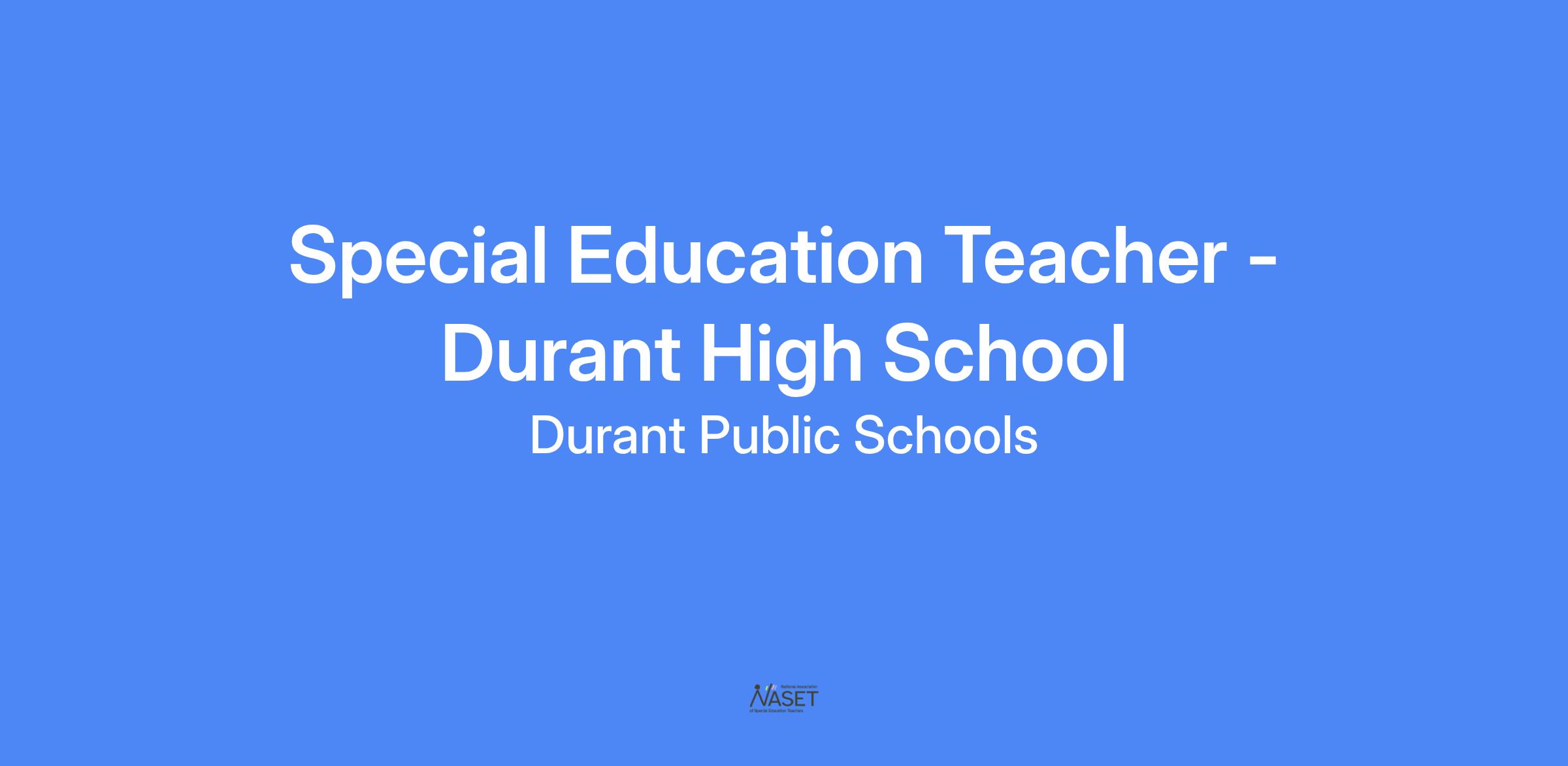 Durant Public Schools is seeking candidates for a Special Education Instructor for the