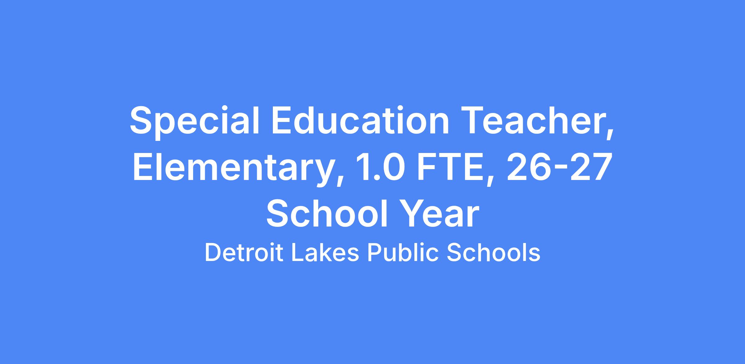 Detroit Lakes Public Schools (ISD#22) is seeking a Special Education Teacher to join our progressive and growing school district.