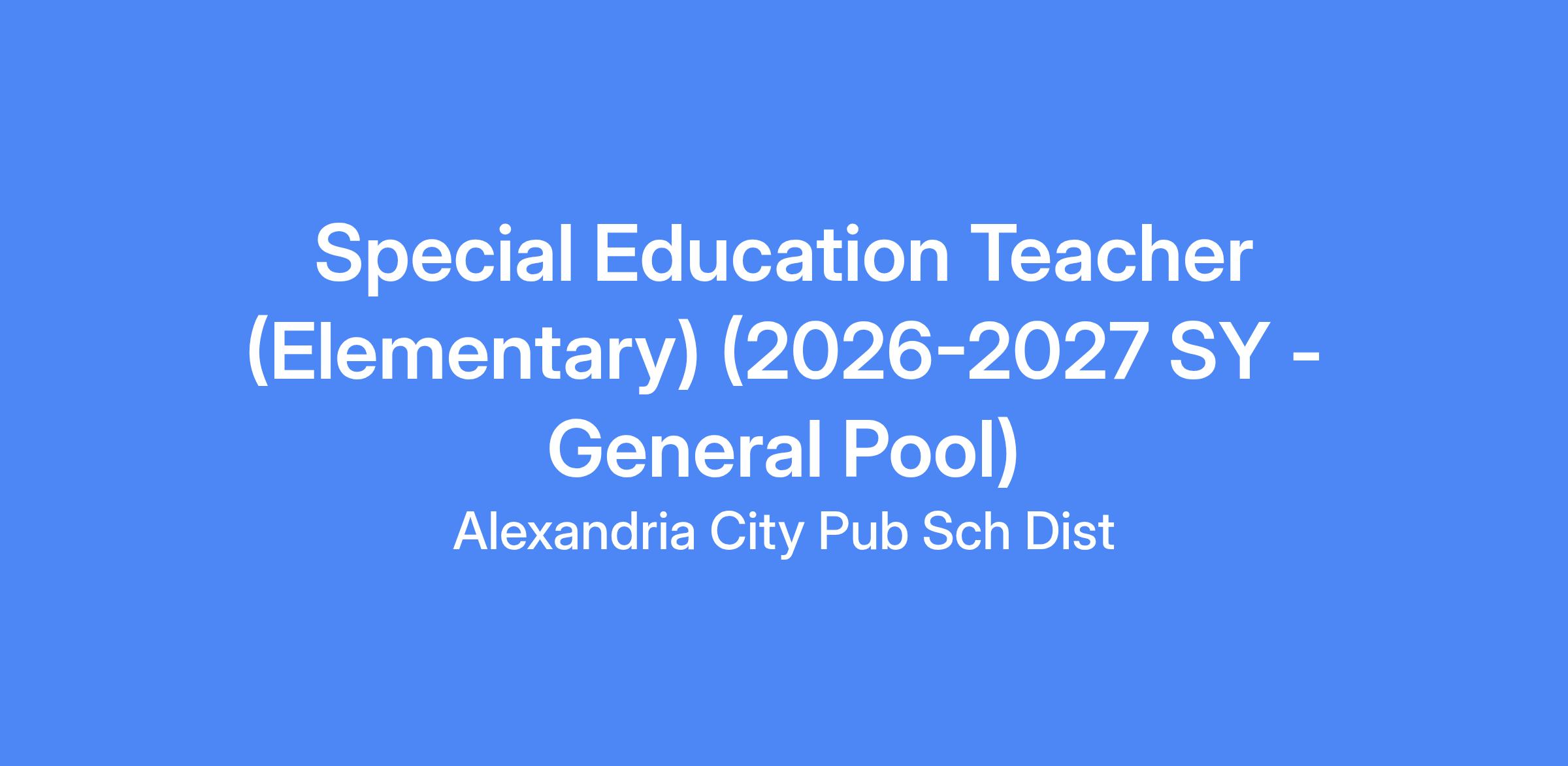 The Special Education Teacher (Elementary) develops special education students' success in academics, interpersonal skills, and activities of daily living by implementing district approved curriculum; documenting teaching and student progress/activities, outcomes; addressing students' specific needs; providing a safe and optimal learning environment; and providing feedback to students, parents, and administration regarding student progress, expectations, goals, etc. This is a Licensed Elementary 10-month, 195 day Teacher position, reporting to the School Principal.