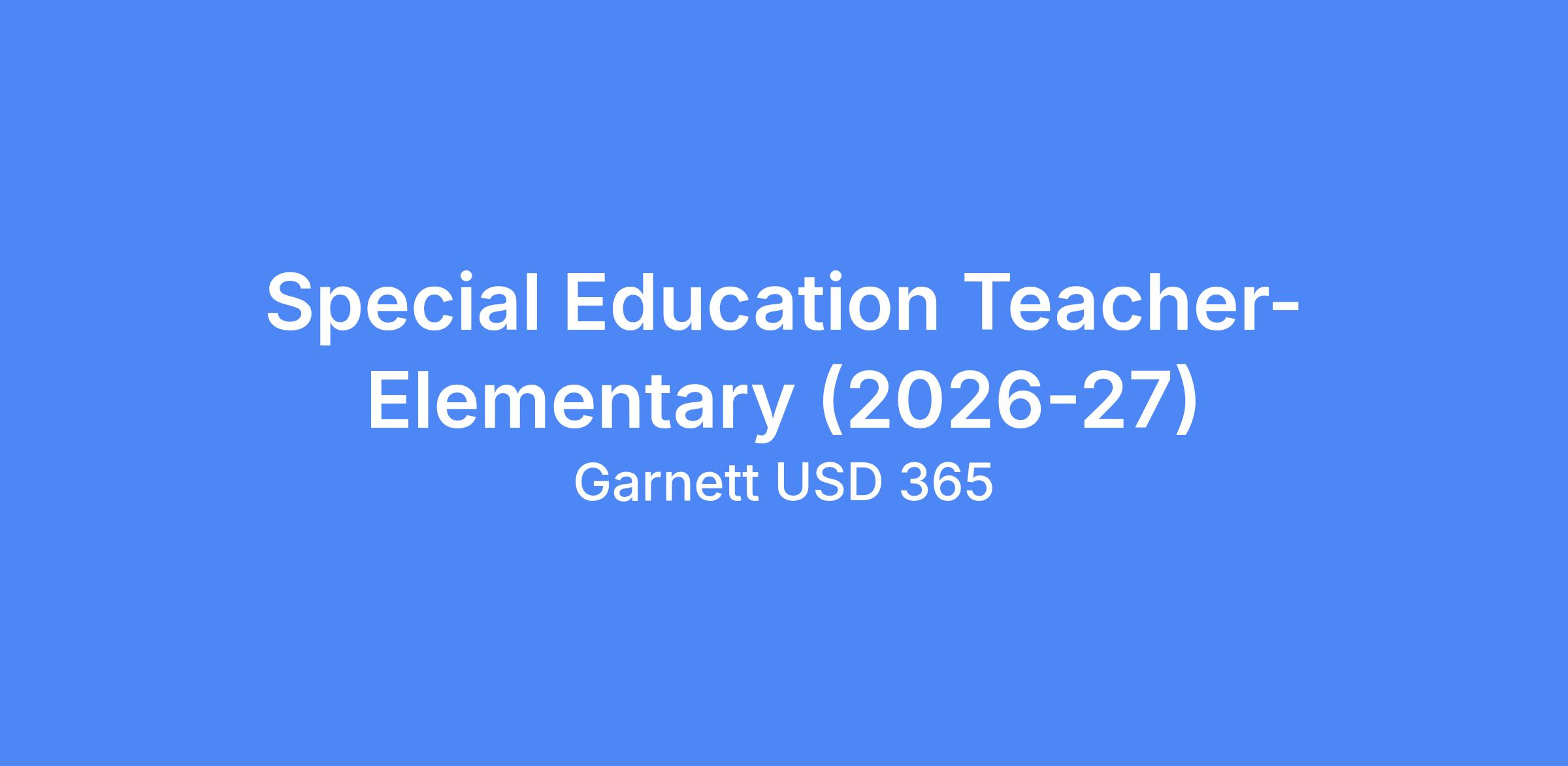USD #365 is seeking Special Education Teachers to fill anticipated openings at the elementary during the 2026-27 school year.