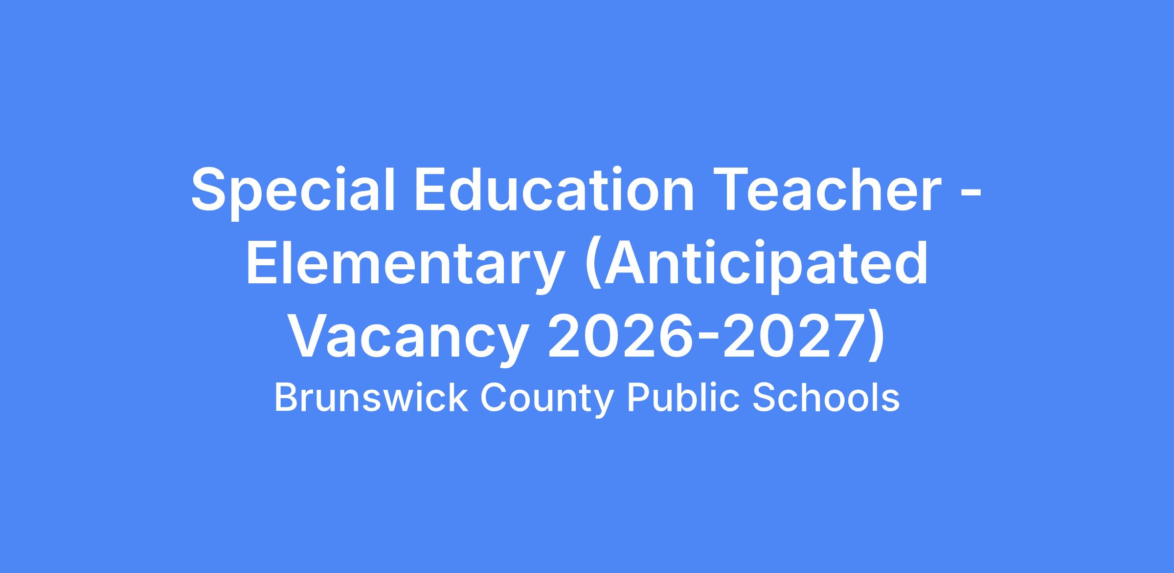 POSITION TITLE: SPECIAL EDUCATION TEACHER - ELEMENTARY (Anticipated Vacancy 2026-2027) CONTRACT YEAR: 10 – MONTH TEACHER CONTRACT SALARY: TEACHER SCALE COMMENSURATE WITH EXPERIENCE (Based on FY27 Salary Scale) START DATE: AUGUST 1