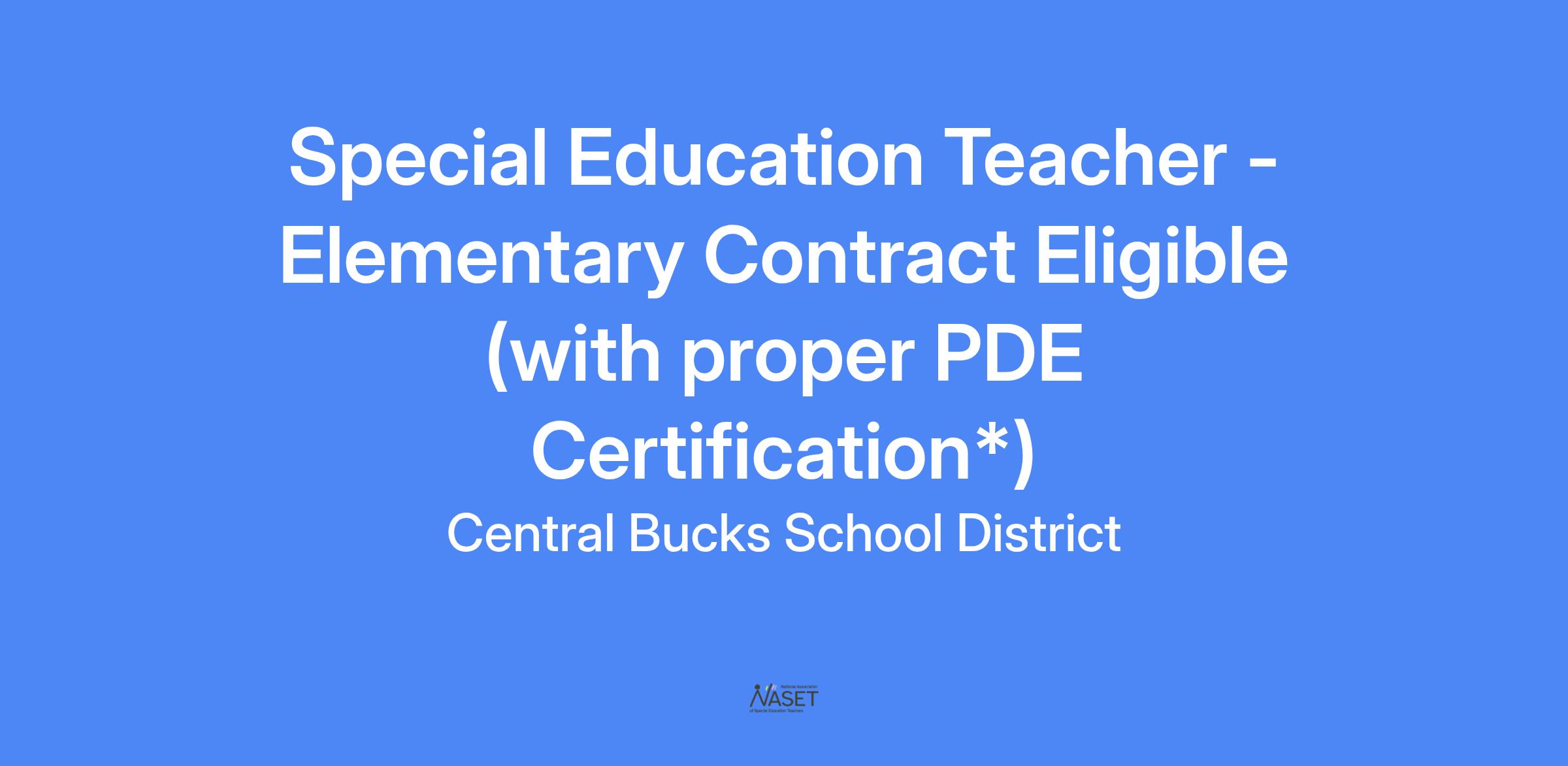 | POSITION: | Special Education Teacher - Elementary Contract Eligible (with proper PDE Certification*) |