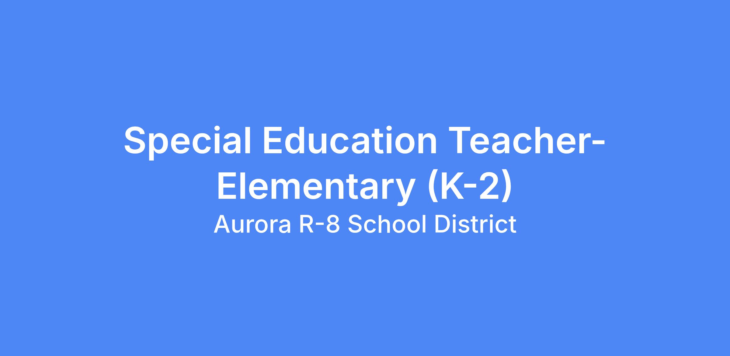 The Aurora R-VIII School District is currently accepting applications for a full-time elementary special education teacher (grades K-2) for the 2026-2027 school year. Knowledge of the special education process and providing specialized services for students are required. It would be beneficial for applicants to have certification in special education along with early childhood or elementary education. Aurora students attend school Monday-Thursday (4 days a week only). This person needs good communication skills and must have the ability to differentiate instruction and provide strategies needed for student learning. This person should be able to collaborate with others, develop plans to ensure learning, utilize behavior strategies to help with significant behaviors, and document well.