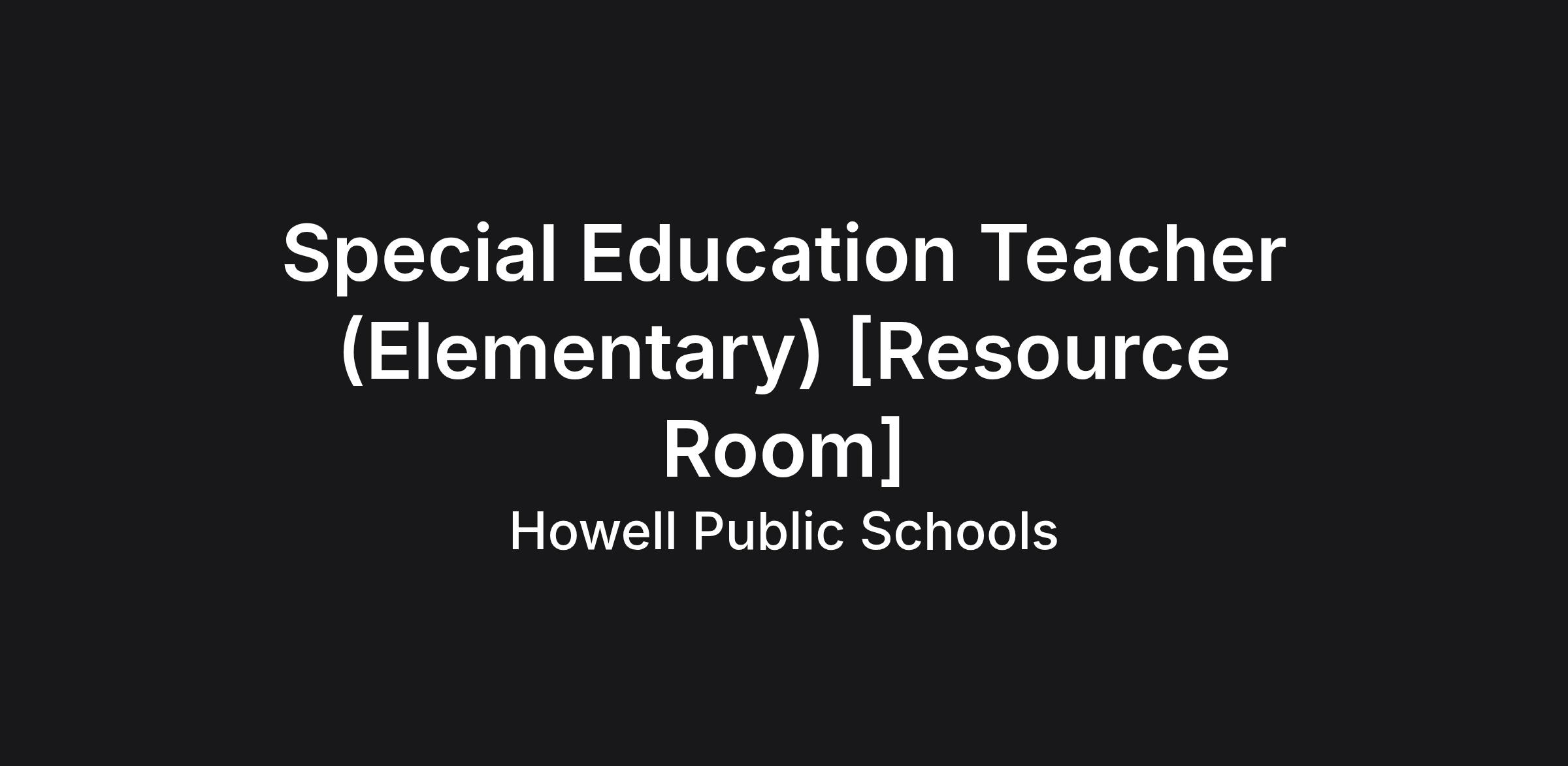 Job Title: Special Education Teacher (Elementary) - Resource Room
