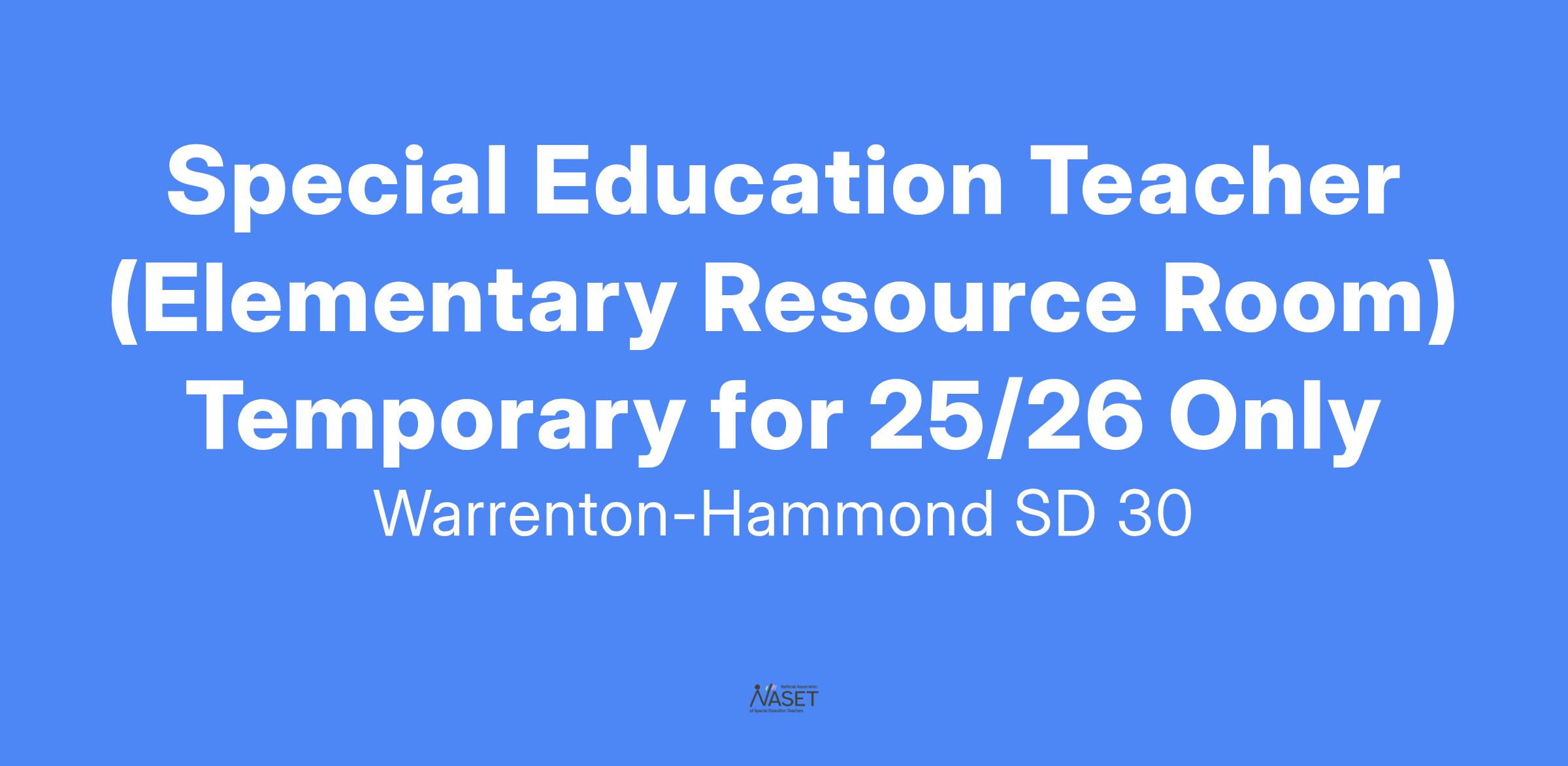 Warrenton Grade School is seeking a full-time Special Education Teacher for an elementary resource room for the 25/26 year only. This temporary, one-year position is responsible for coordinating and providing special educational services to special education students in a classroom setting.