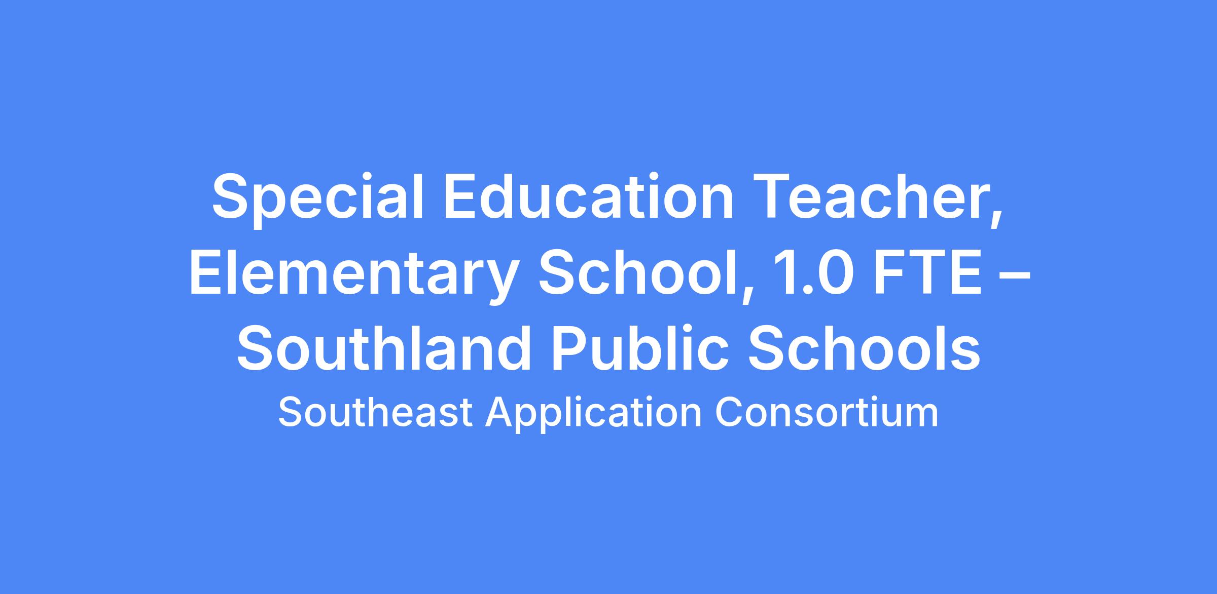 Special Education Teacher, Elementary School, 1.0 FTE – Southland Public Schools