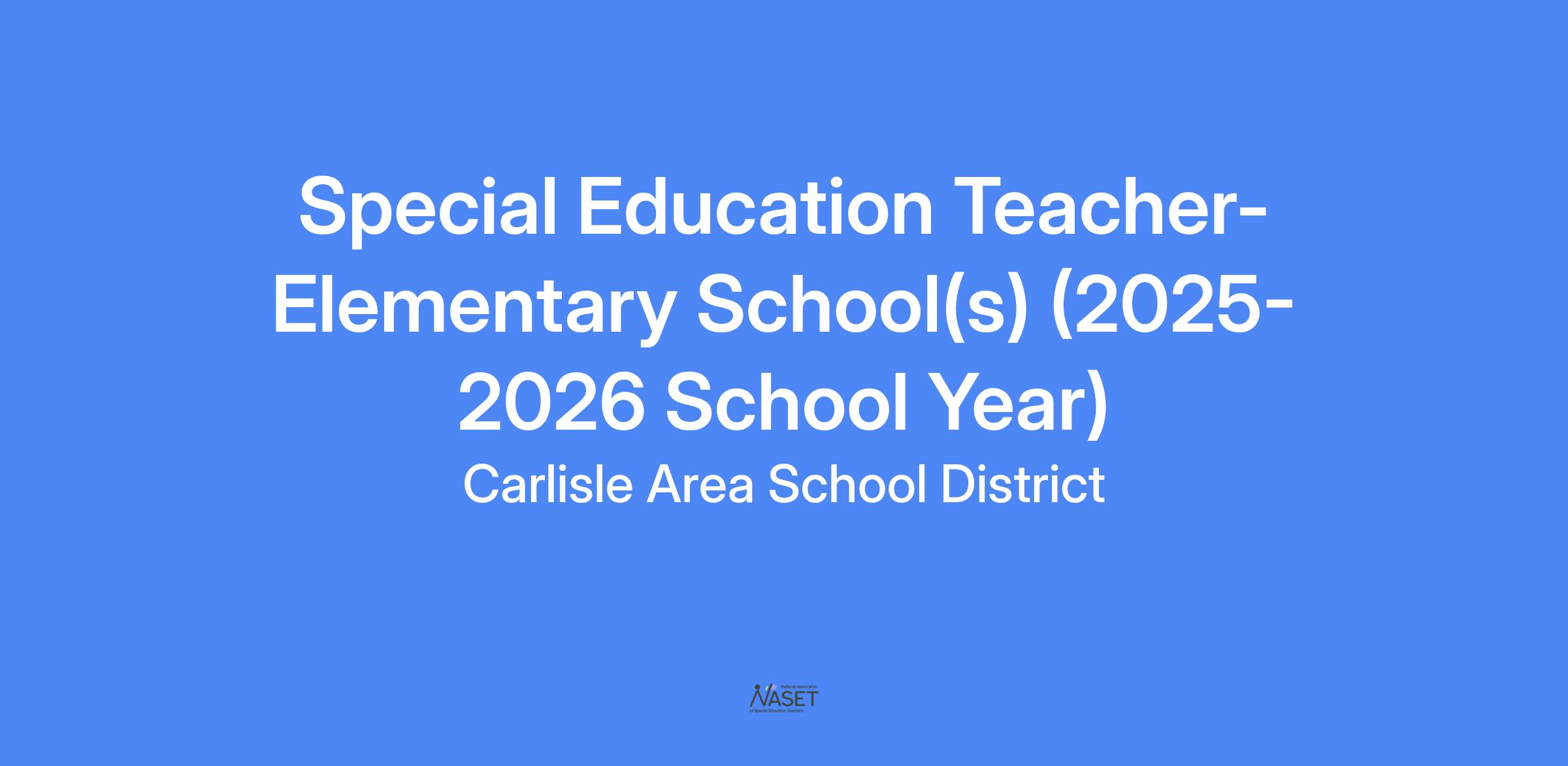 POSITION: Special Education Teacher - Elementary School(s) (2025-2026 School Year)