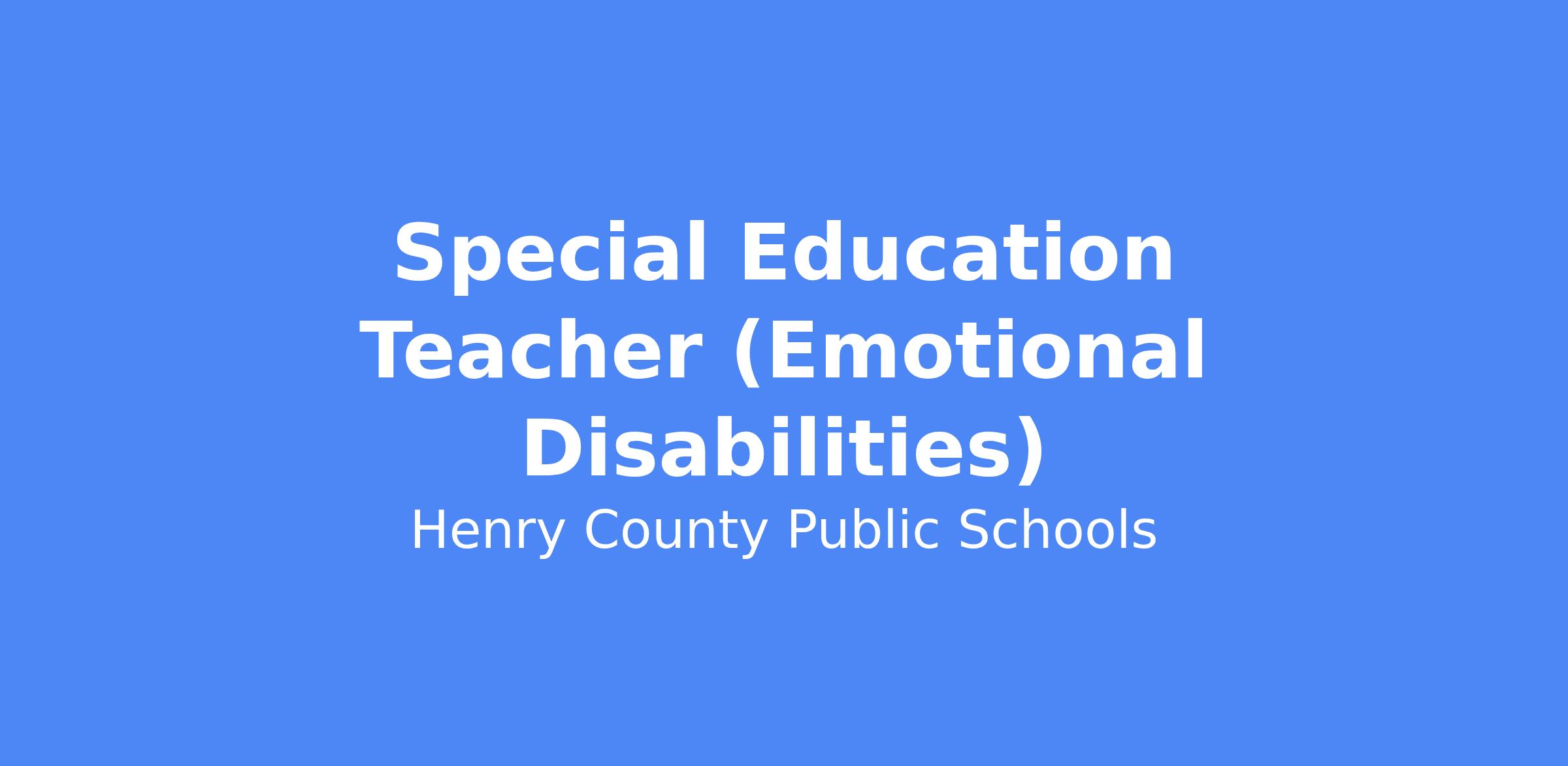JOB TITLE: Special Education Teacher (Emotional Disabilities)