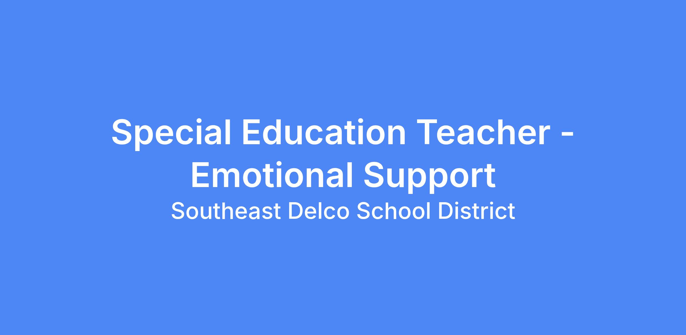Special Education Teacher- Emotional Support Grades 6-8