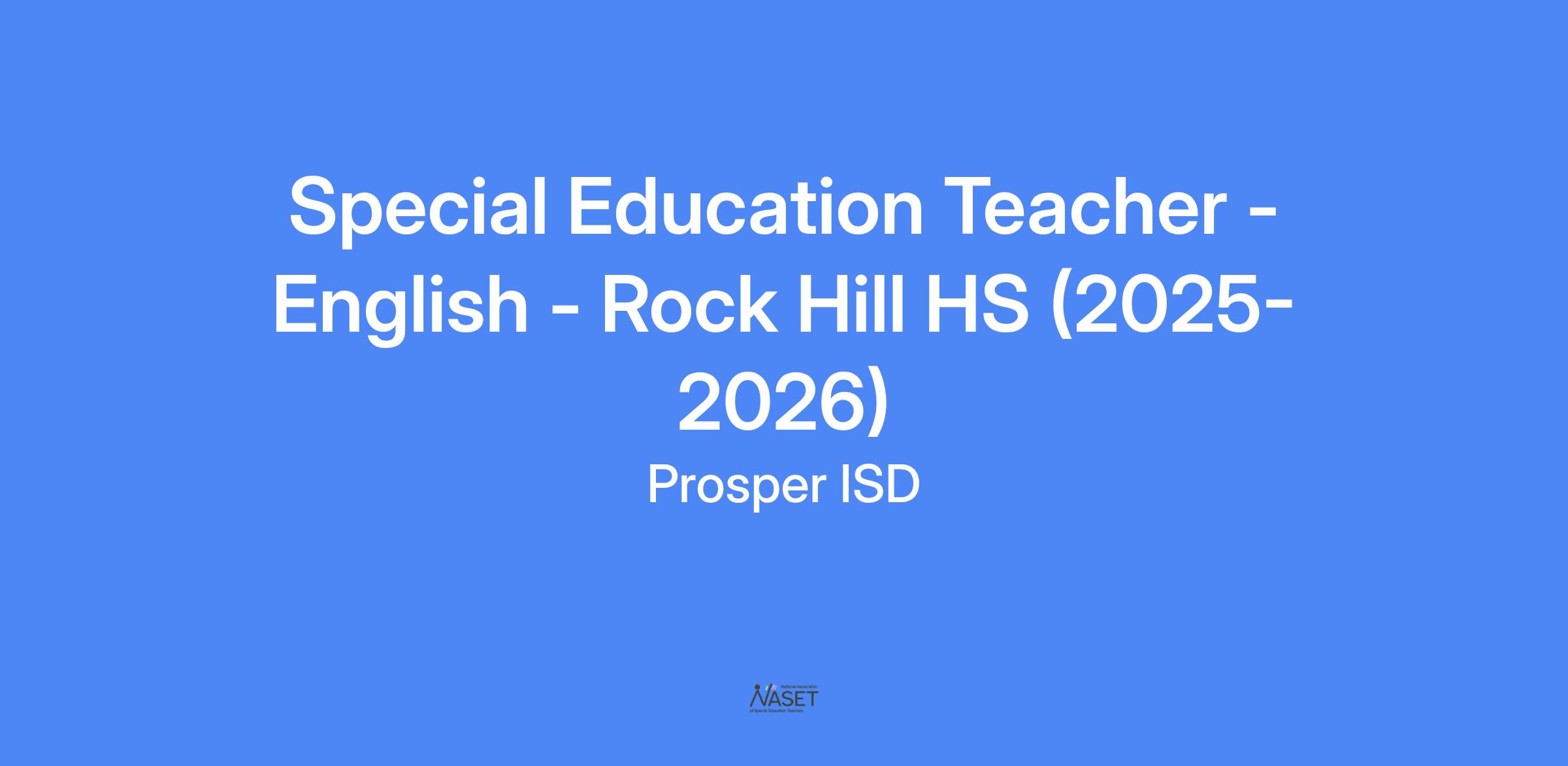 Special Education Teacher - English - Rock Hill HS (2025-2026)