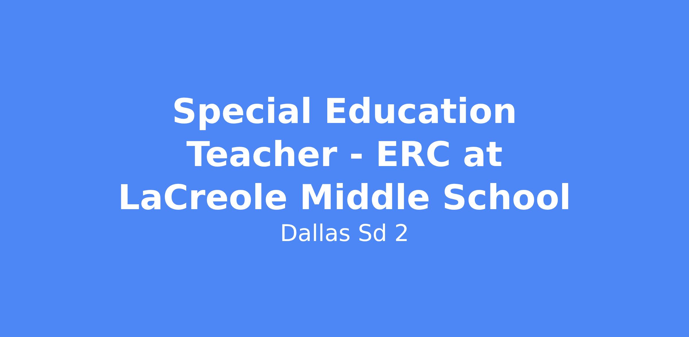 Dallas School District is accepting applications for full-time Special Education Teacher in the ERC at LaCreole Middle School. This position is for the 2026-27 school year.