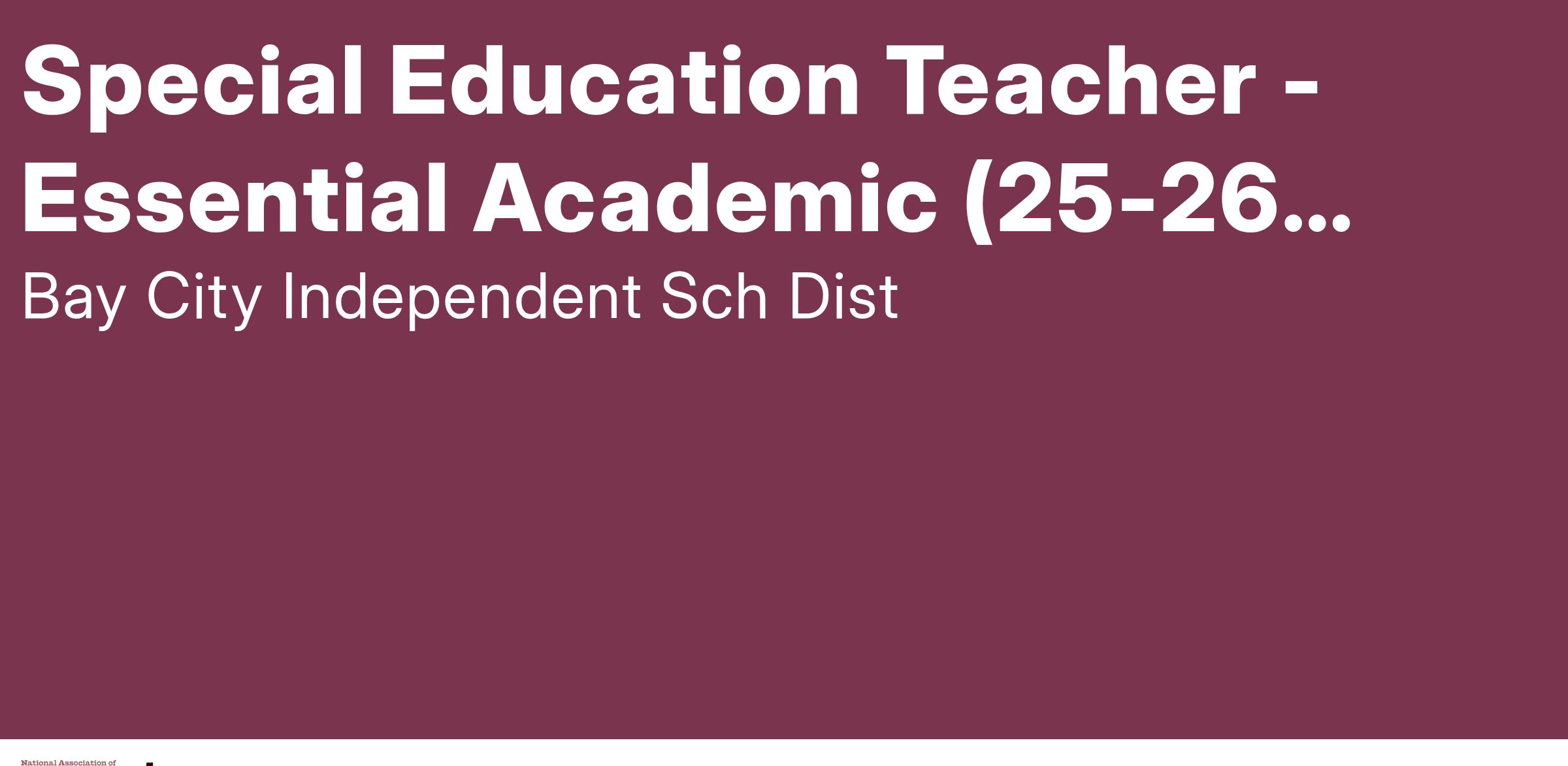 Job Title: Special Education Teacher - Essential Academic