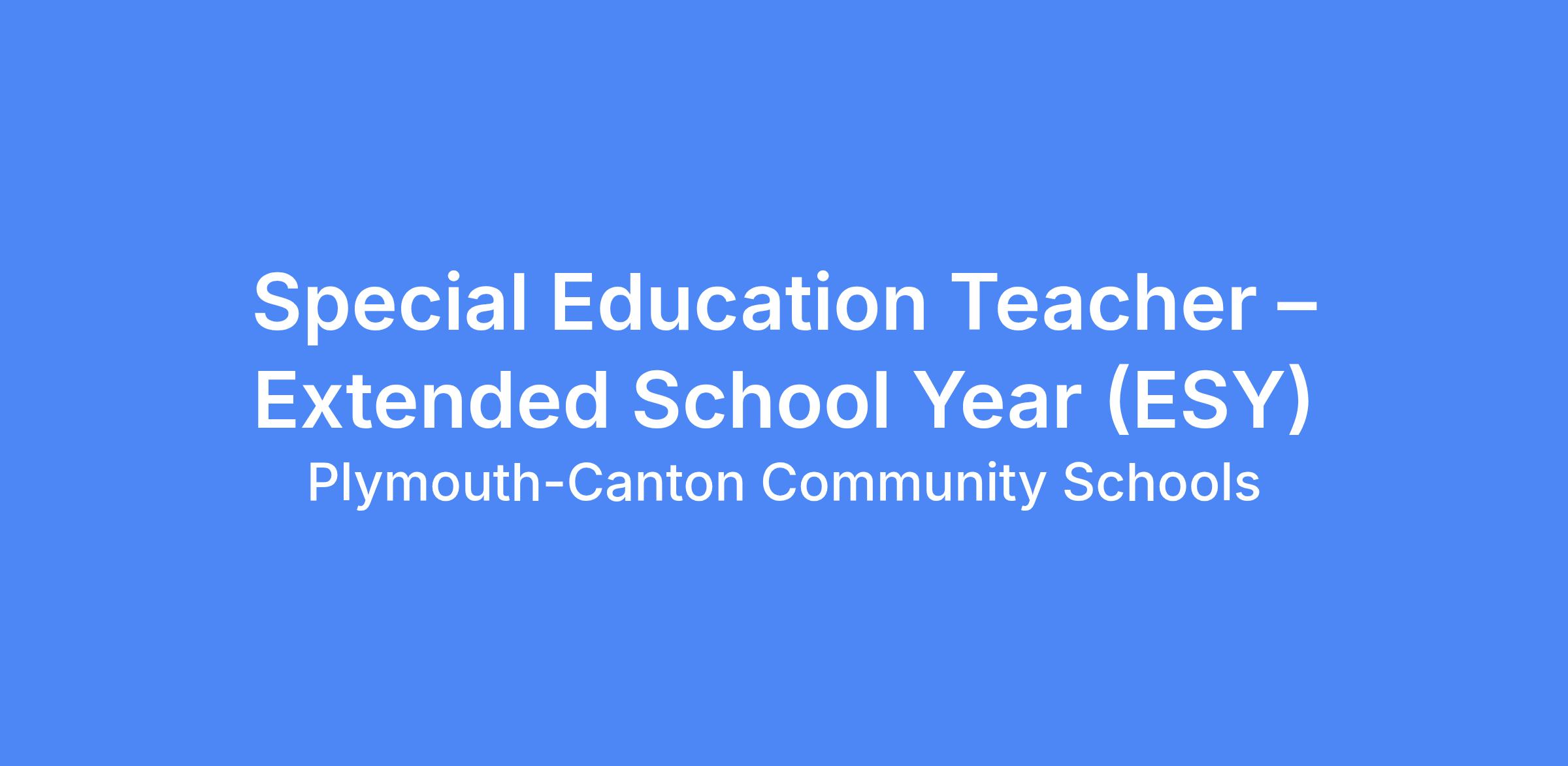 POSITION: Special Education Teacher � Extended School Year (ESY)
