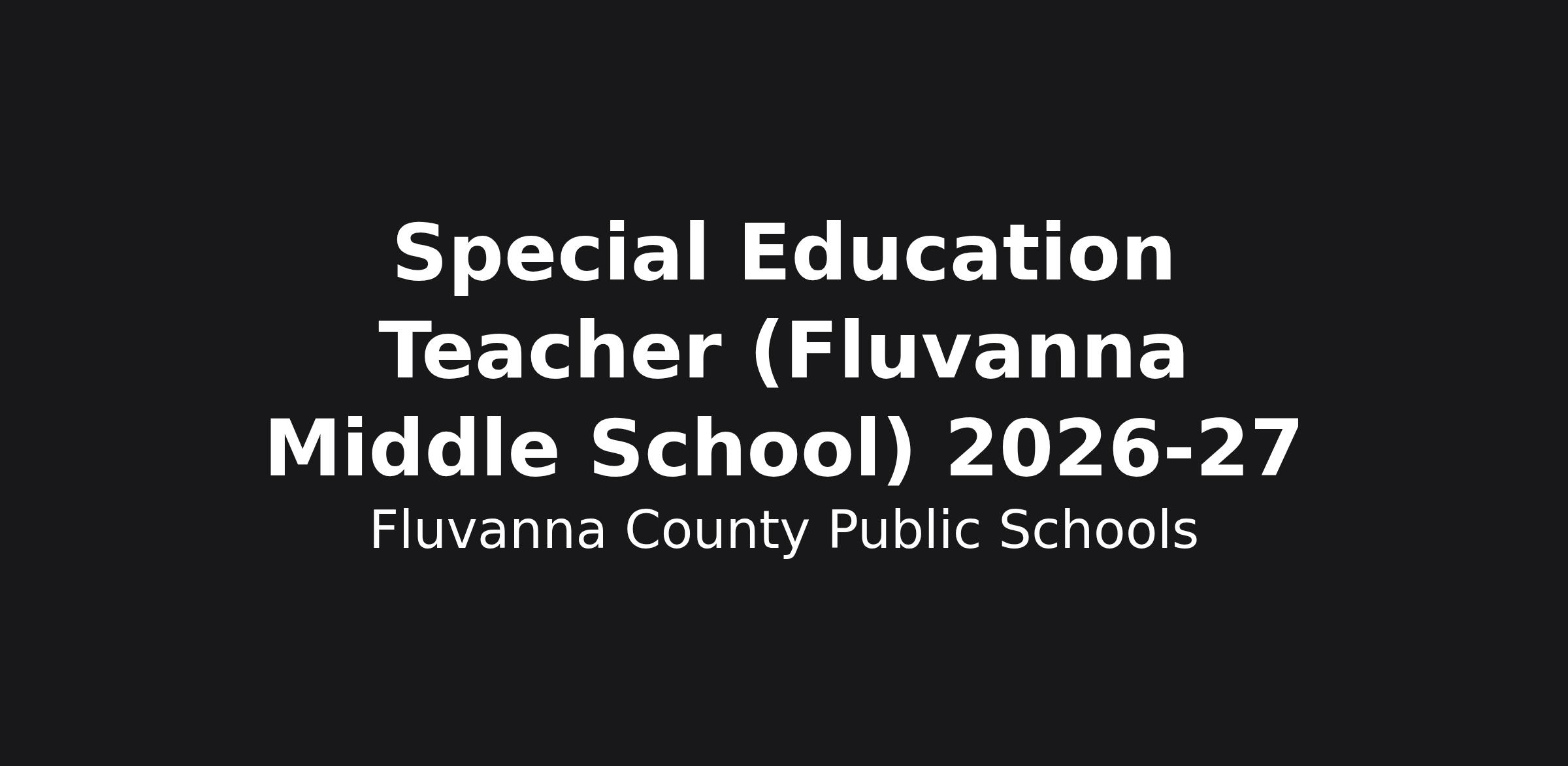 Fluvanna County Public Schools seek to hire a qualified Special Education Teacher at Fluvanna Middle School (Grades 5-7) to fill an immediate vacancy.
