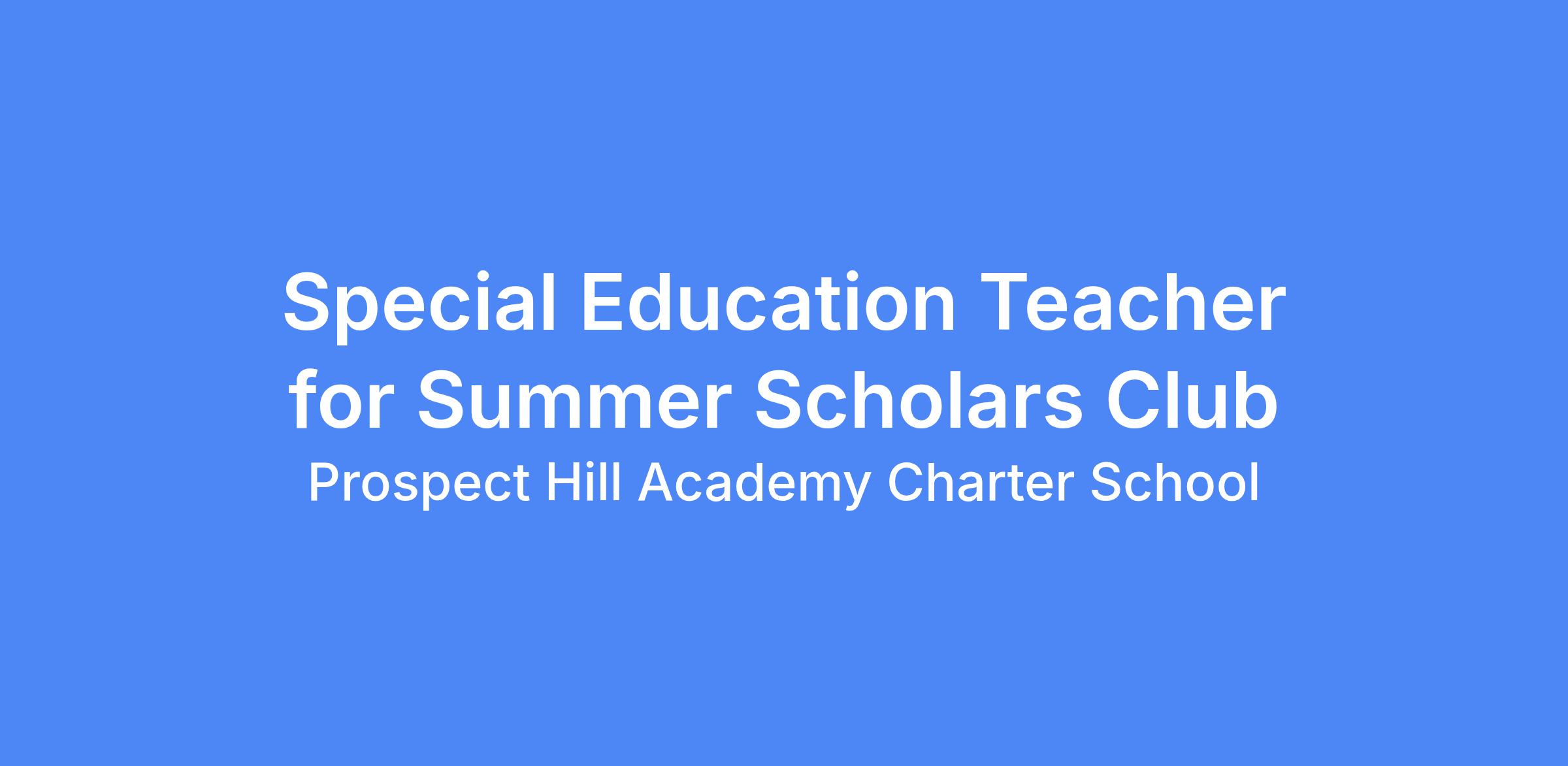 Prospect Hill Academy Charter School is looking for qualified Special Education teachers to provide Extended School Year Services in our Summer Scholars Club.