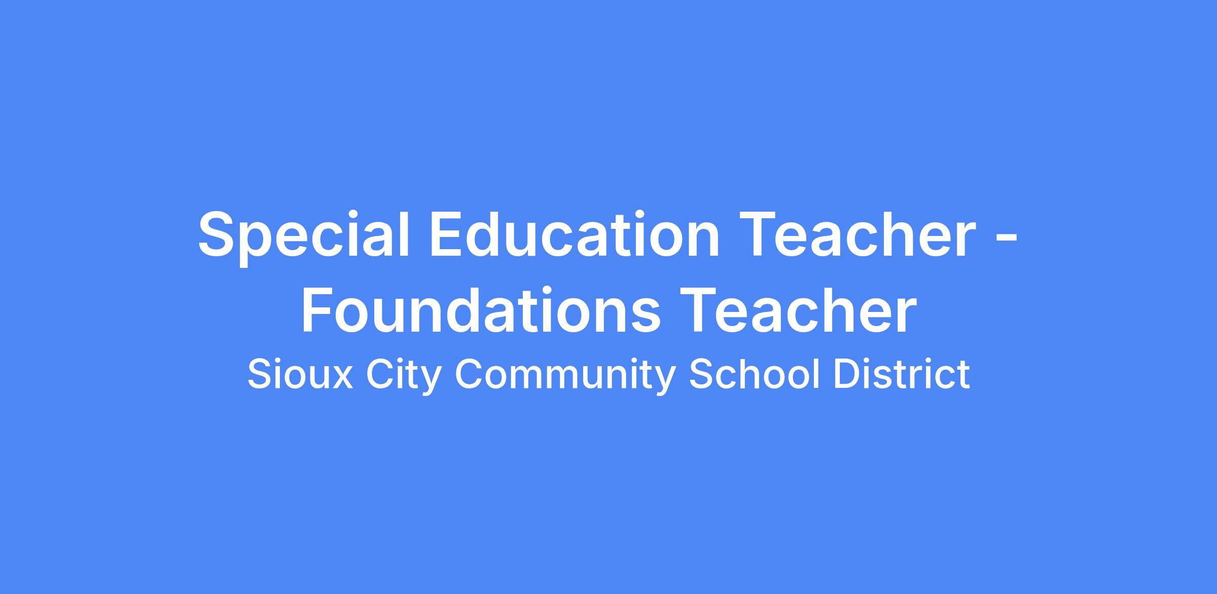The special education teacher is the educational leader in the classroom and will ensure that the Sioux City Community School District programs and curricula are implemented in a way that maximizes student-learning experiences. The teacher is responsible for the supervision and evaluation of all students within his/her teaching assignment. Consistent with the Department of Education and Sioux City Community School District policies, the teacher will work within an established framework for the delivery of educational services which support student learning. Working collaboratively with a team of educational professionals, the teacher will demonstrate a strong commitment to planning for the improvement of student achievement. Teaches students academic, social, and motor skills and plans, organizes and presents instruction in an environment which helps students learn the subject matter and skills that will contribute to their educational and social development.