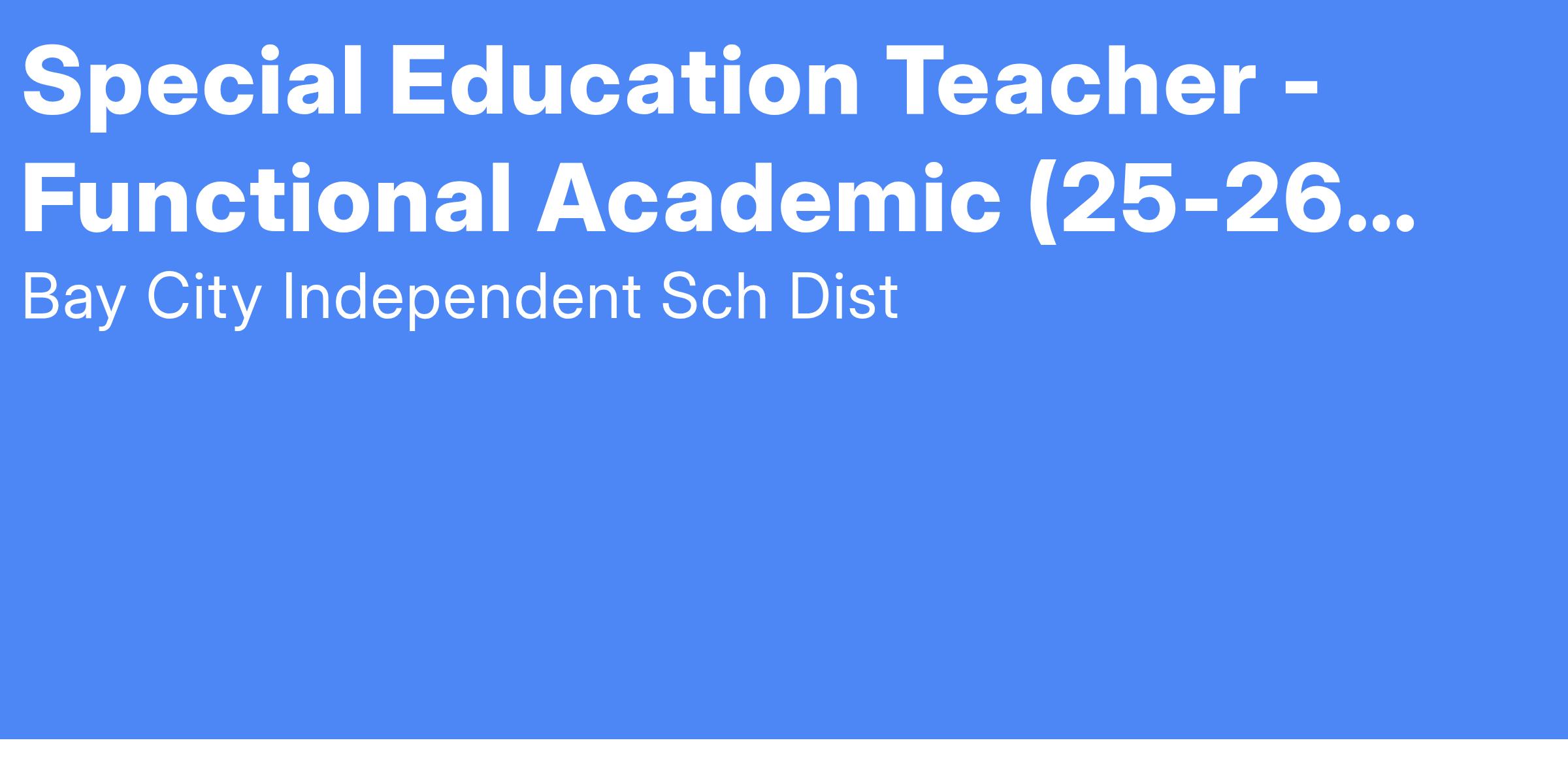 Job Title: Special Education Teacher - Functional Academic