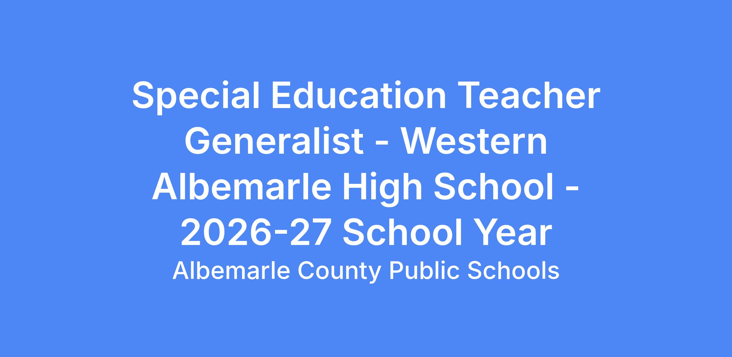 Education and Experience: Candidates must possess a current Virginia Special Education endorsement in Adapted Curriculum K-12 (preferred) or Special Education General Curriculum K-12. Those with a Special Education General Curriculum endorsement must be willing to consider working toward the Adapted Curriculum endorsement. |