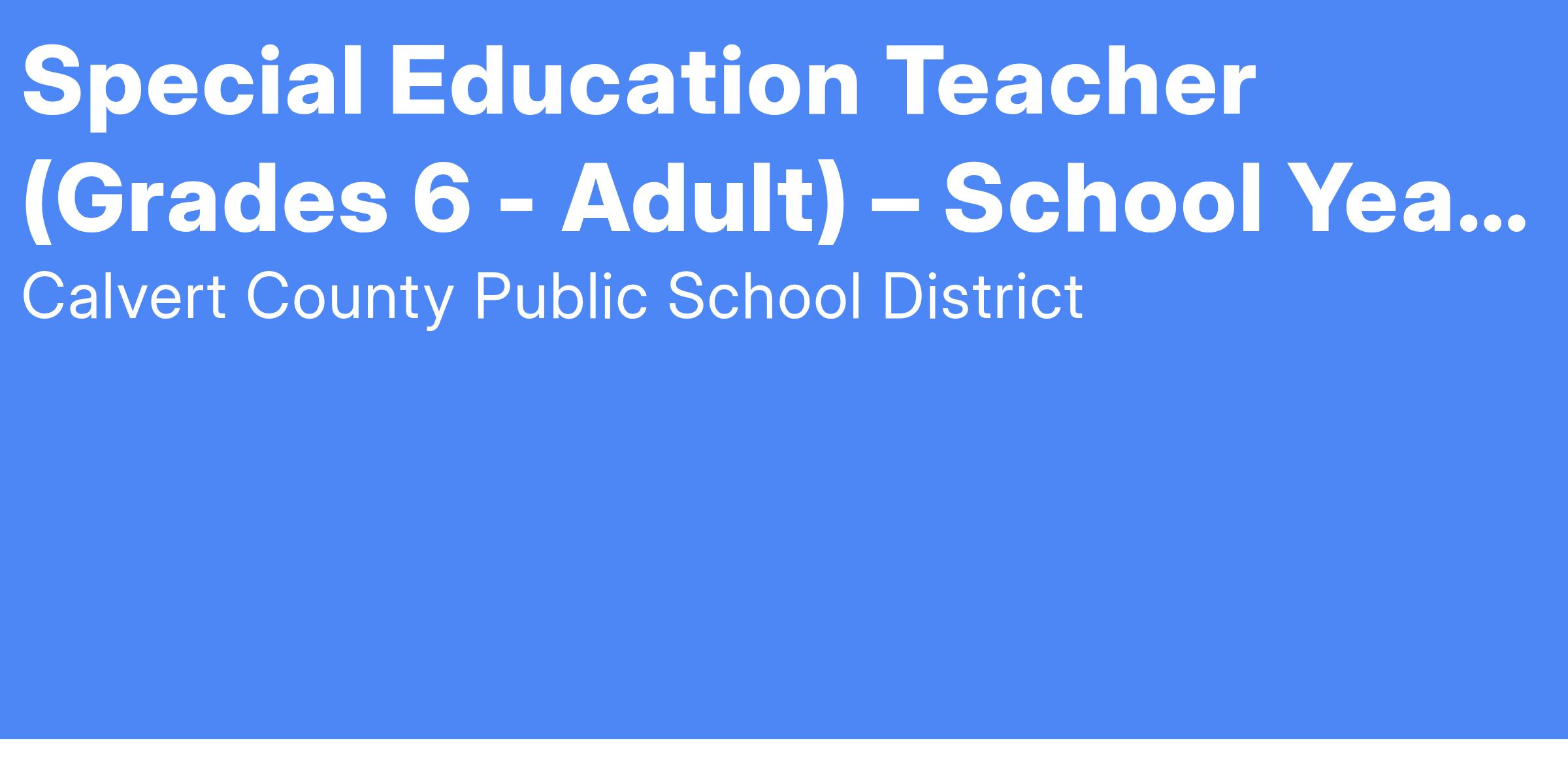 TERMS OF EMPLOYMENT: Ten (10) month position and salary commensurate with qualifications and experience applied to the current Calvert County Public Schools salary schedule for teachers. All employees are encouraged to have automatic payroll deposit.