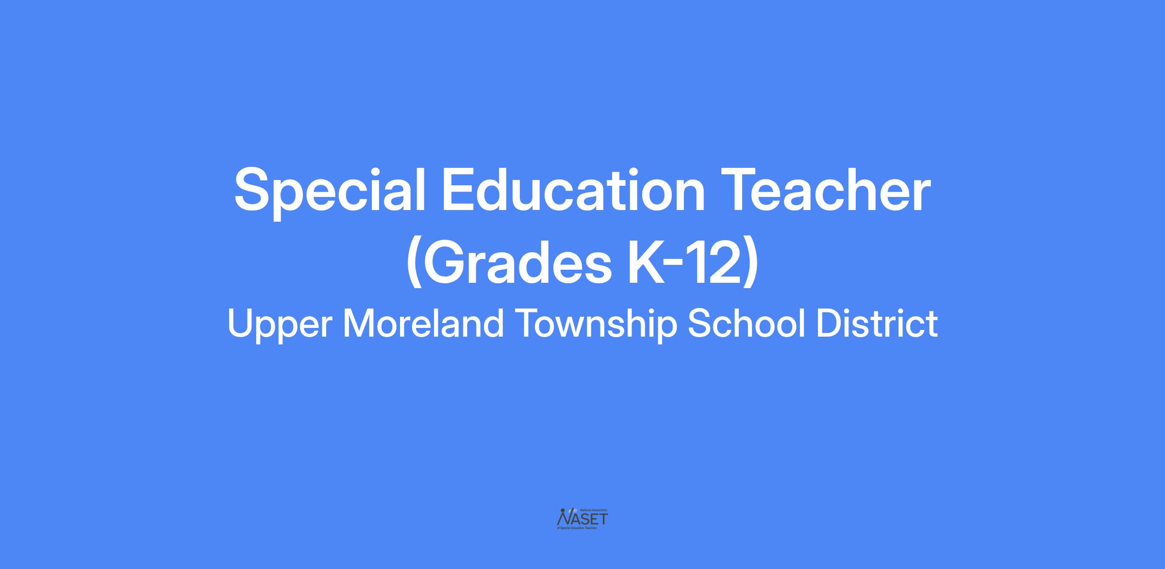 Position: Special Education Teacher (K-12) Department: Upper Moreland Primary School (K-2) Reports to: Assigned Building Principal FLSA Status: Exempt – Upper Moreland Education Association Schedule: Full Time, 7.5 hours/day, 10 Months Starting Rate: $57,050 annually