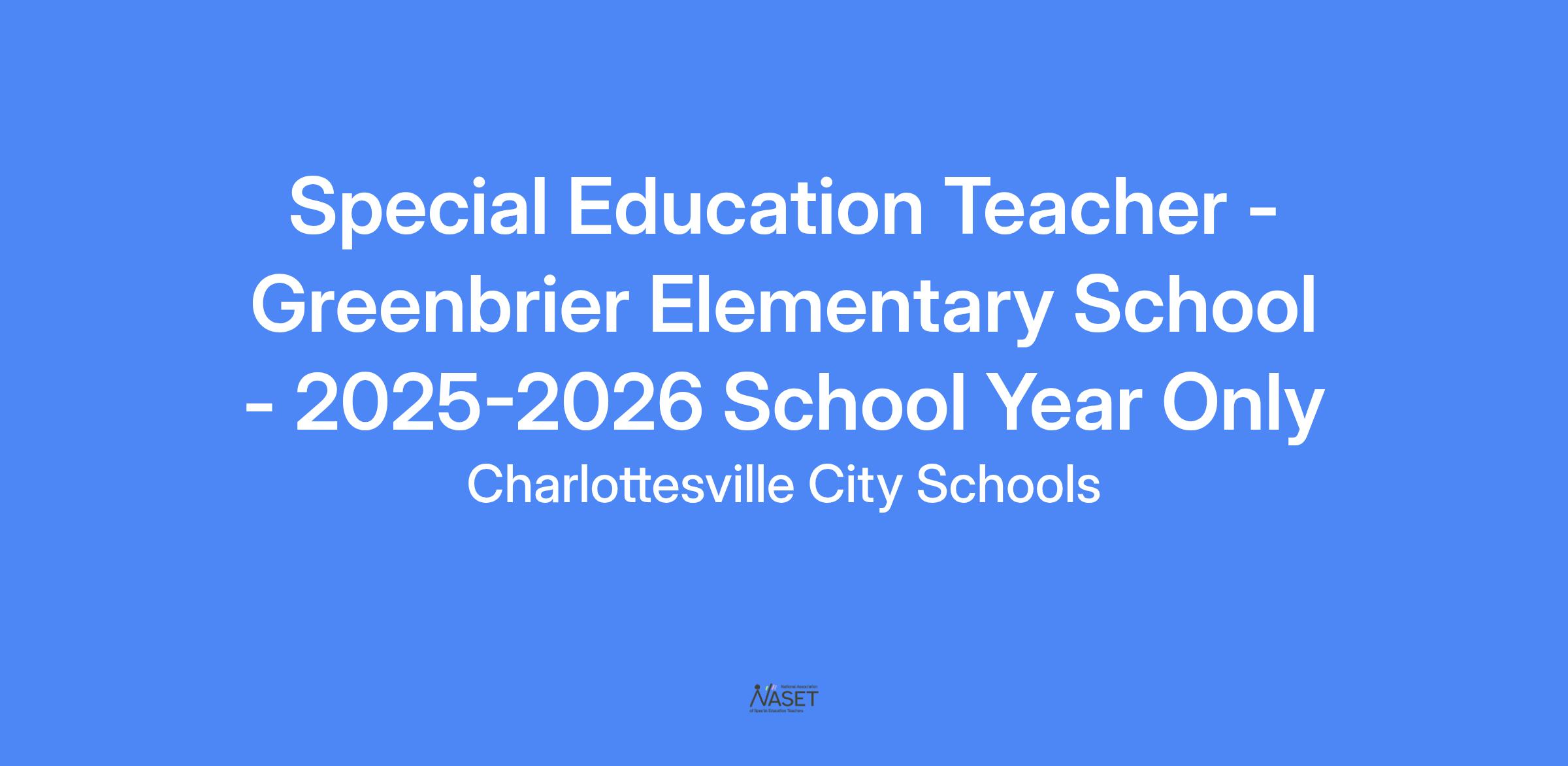 Job Title: Special Education Teacher (2025-26 School Year ONLY)
