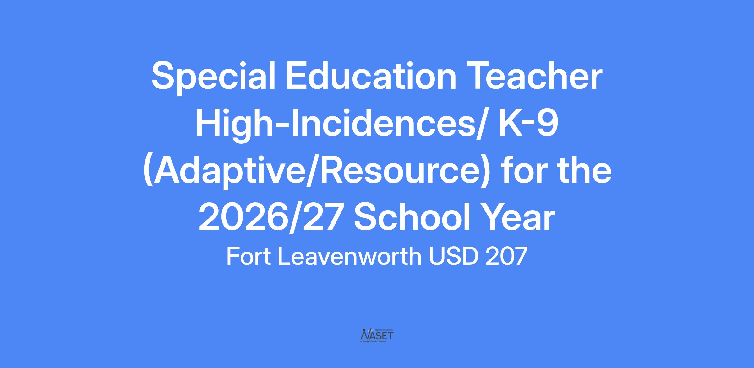 High Incidence (Resource) Special Education Teacher - 2026/27 School Year