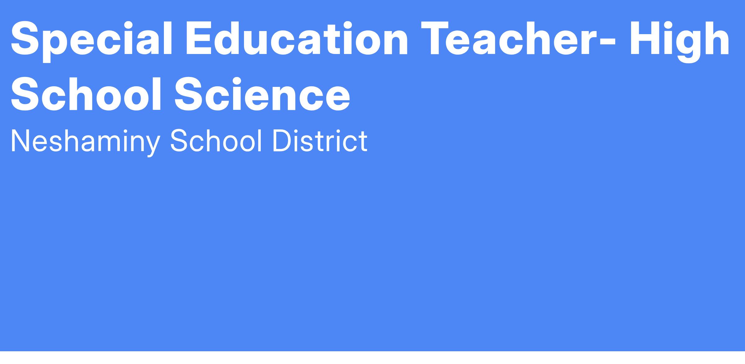 The Neshaminy School District has an opening for a special education teacher, a certification in learning support science is preferred. This position is locacted at Neshaminy High School.