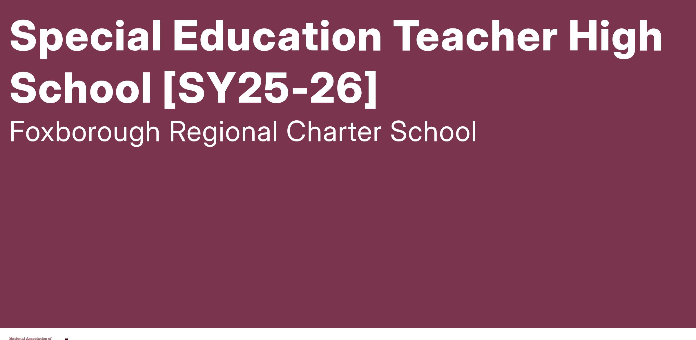 Foxborough Regional Charter School District is committed to creating a work environment that celebrates and promotes diversity and is proud to be an equal-opportunity employer. All qualified applicants will receive consideration for employment without regard to race, color, religion, gender, gender identity or expression, sexual orientation, national origin, genetics, disability, age, or veteran status.
